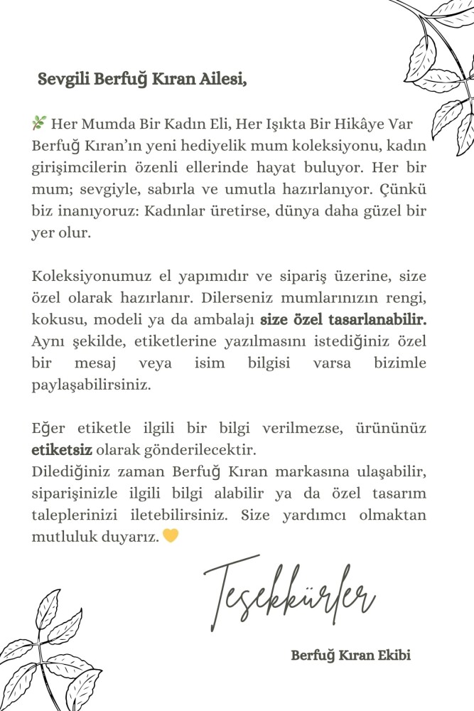 Organizasyon ve etkinlikleriniz için özel adetlerde sipariş verilebilir. Her siparişte kalite, estetik ve özen ön plandadır.