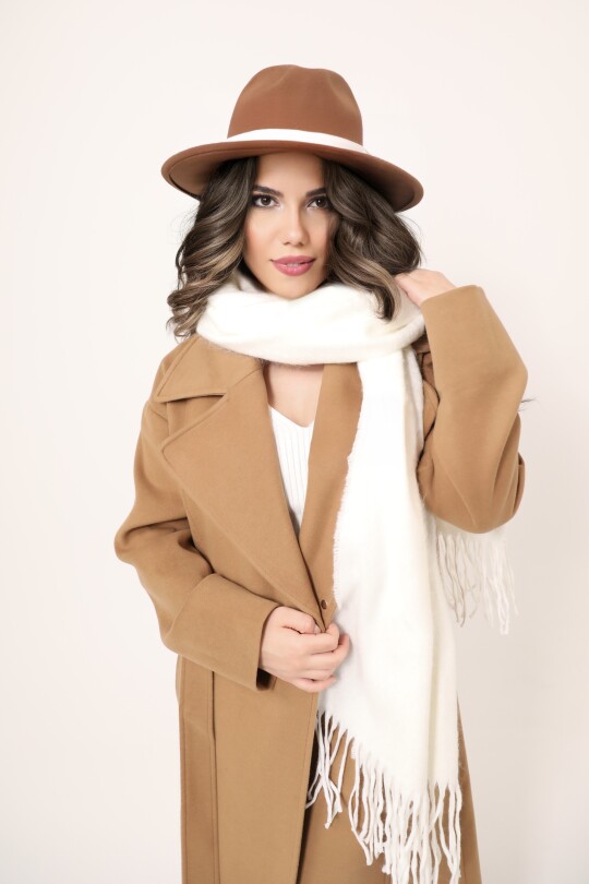 Ürün Bilgileri: Kumaş: Buklet Şal Atkı | Renk: Ekru | Aksesuarlar dahil değildir.