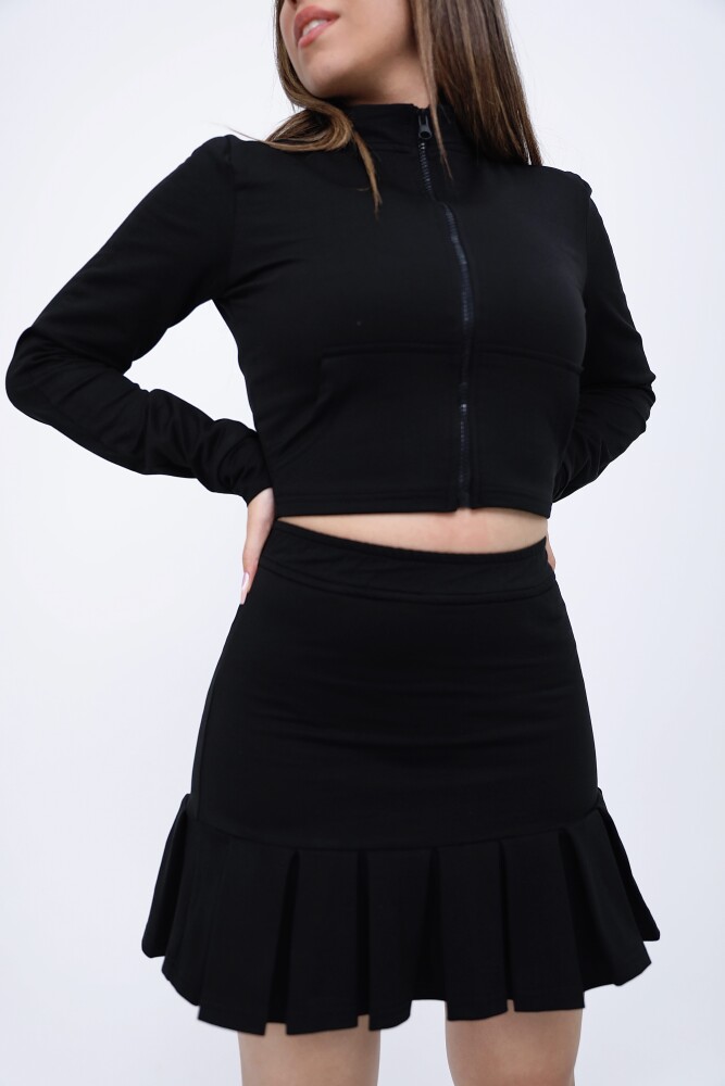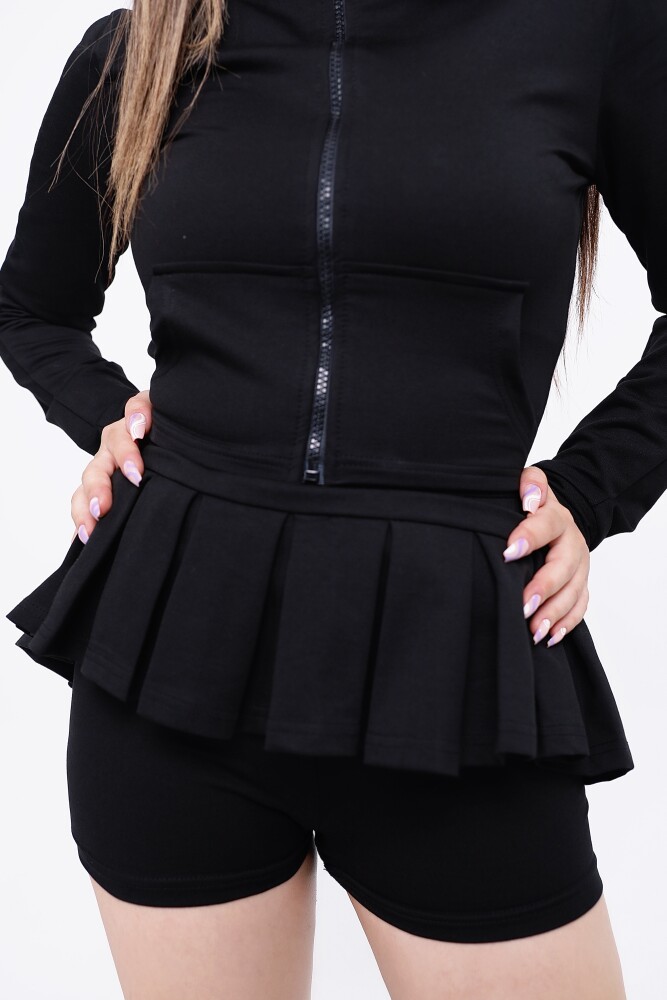 Black Elastic Waist Ruffled Skort