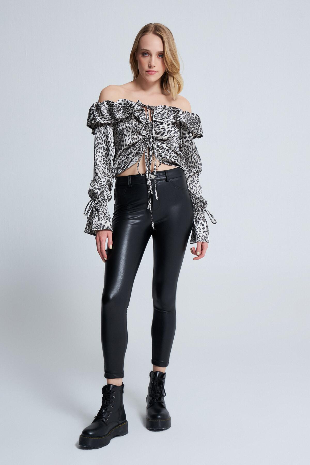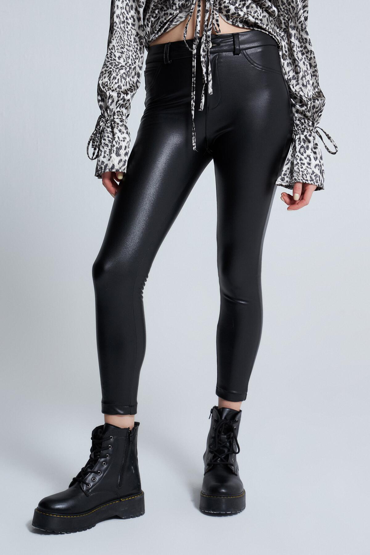 BLACK LEATHER TROUSERS WITH FLEECE LYCRA.