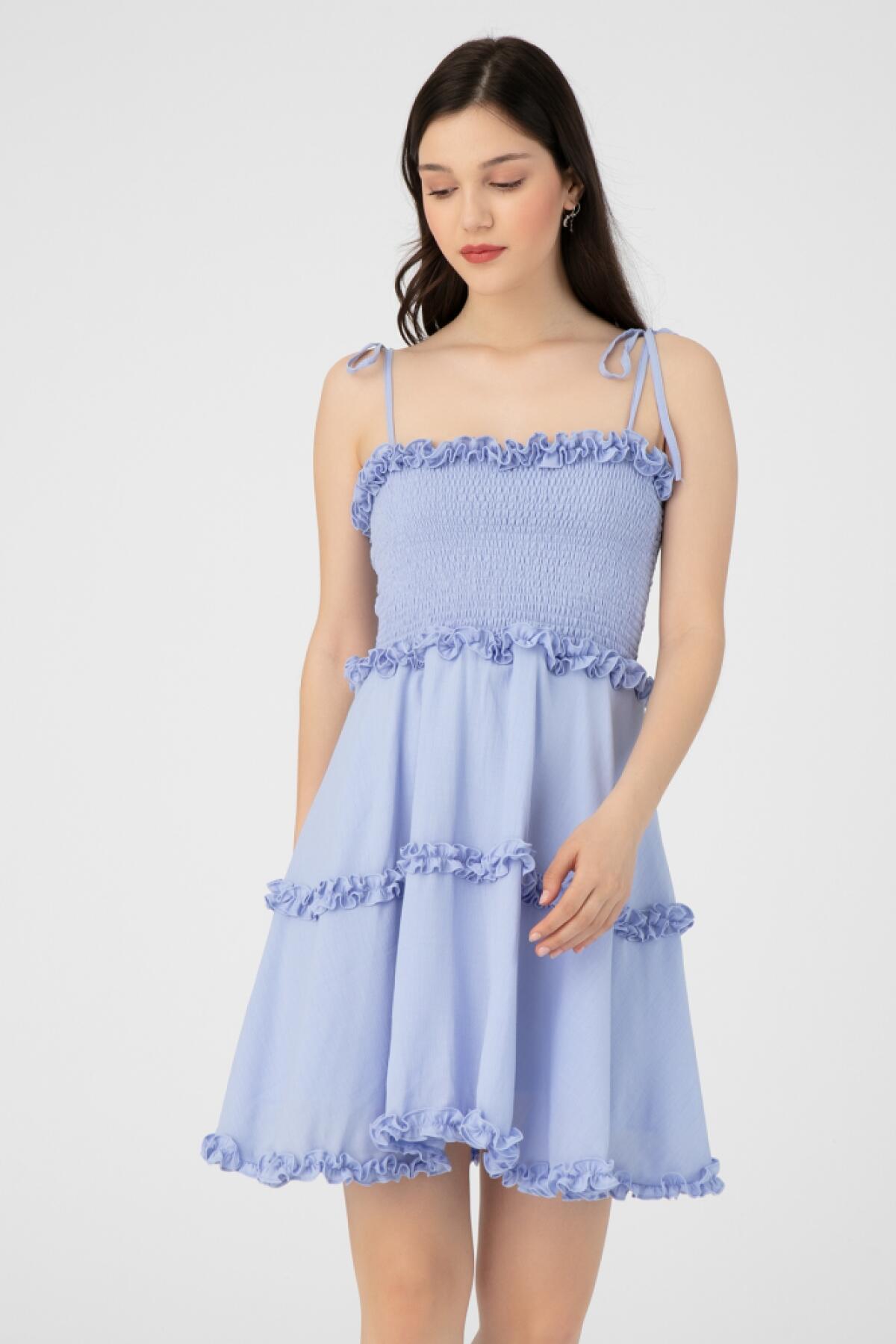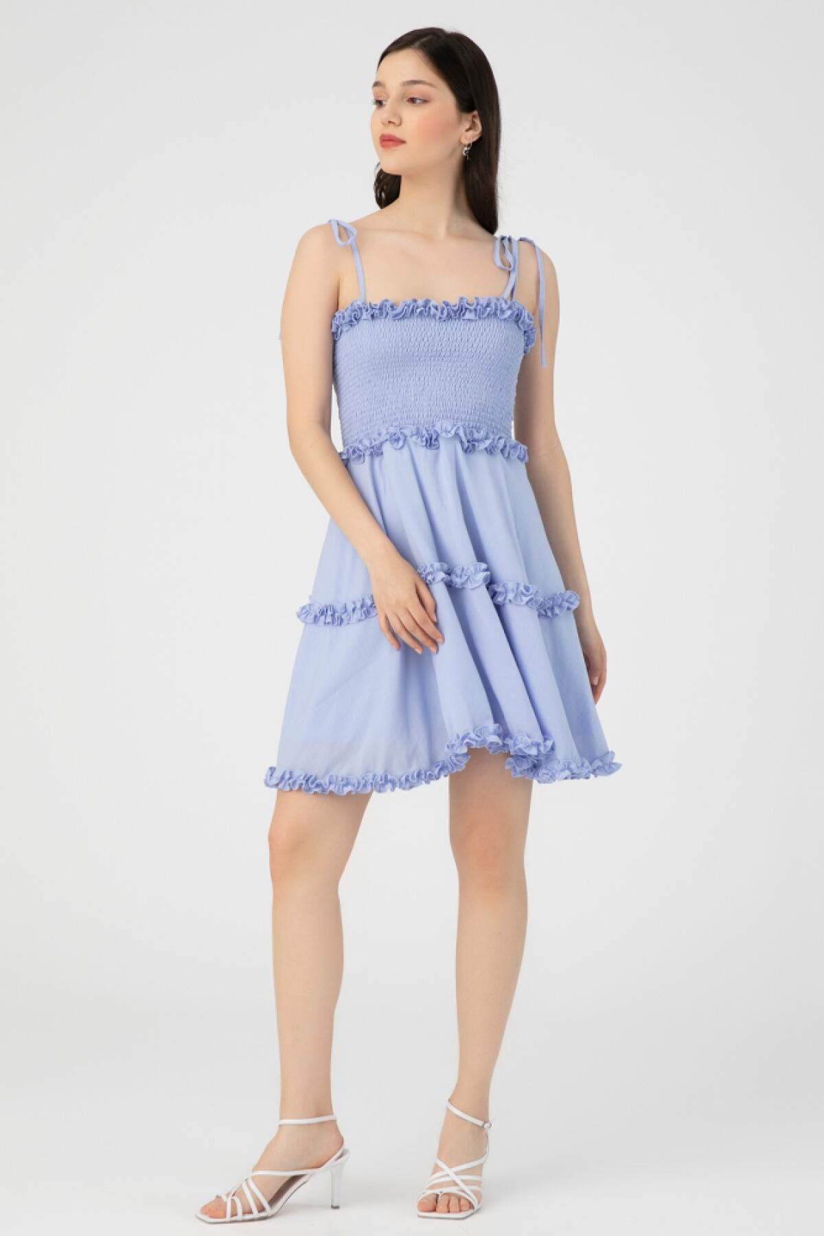 Modellinformationen Höhe: 1,75 Brust: 80 Taille: 61 Hüfte: 91 Produktinformation Stoff : Crinkle Beispielgrößen Stoffart : Crinkle Farbe blau AUFGRUND DER KOMPAKTAUFNAHME KÖNNEN FARBTÖNE ABWEICHEN.