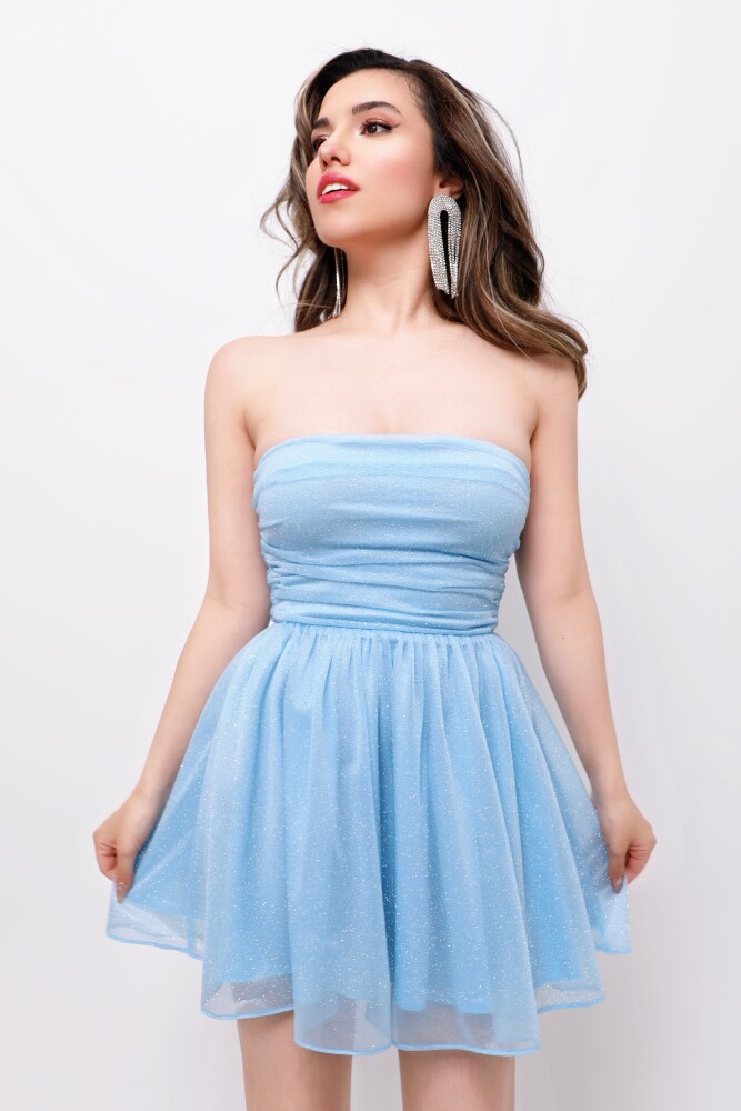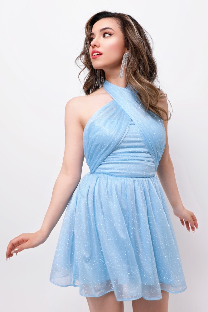 Kumaş: Simli Şifon | Renk: Bebe Mavi | Aksesuarlar dahil değildir.