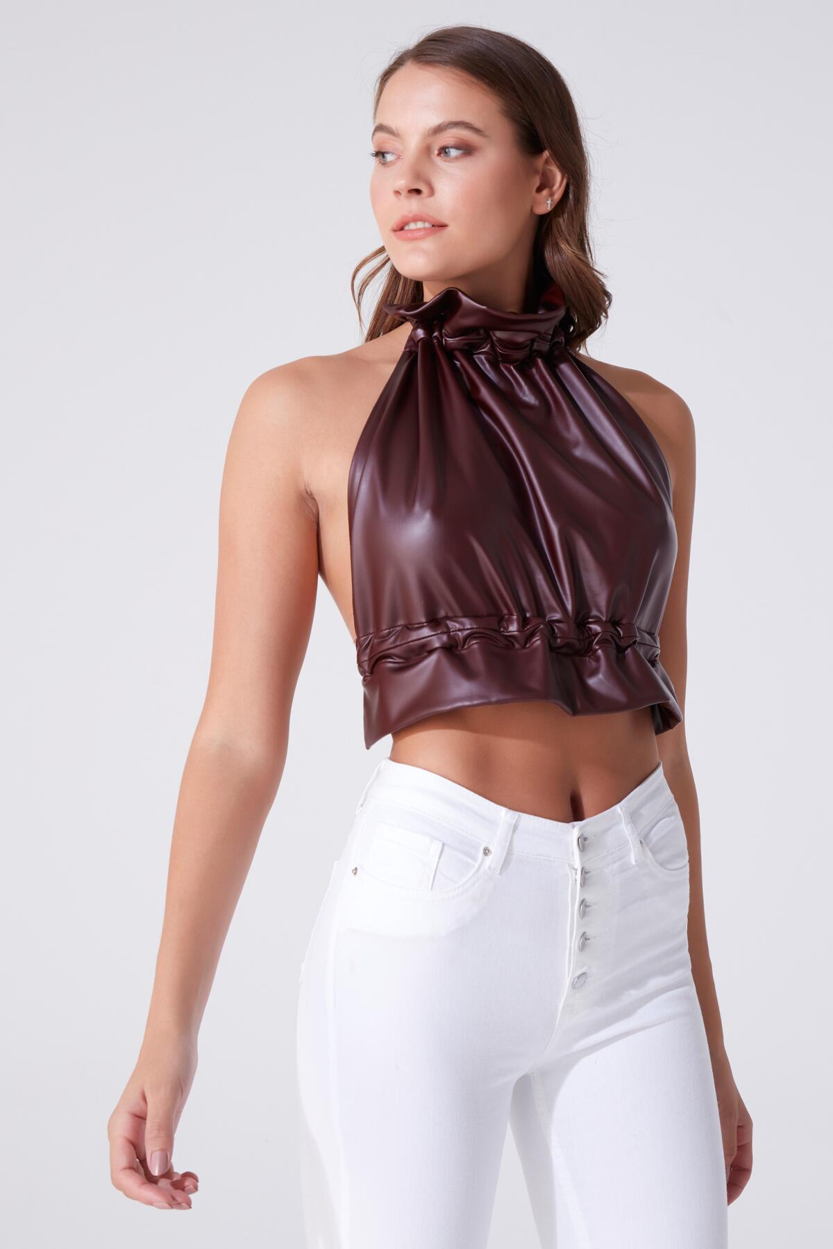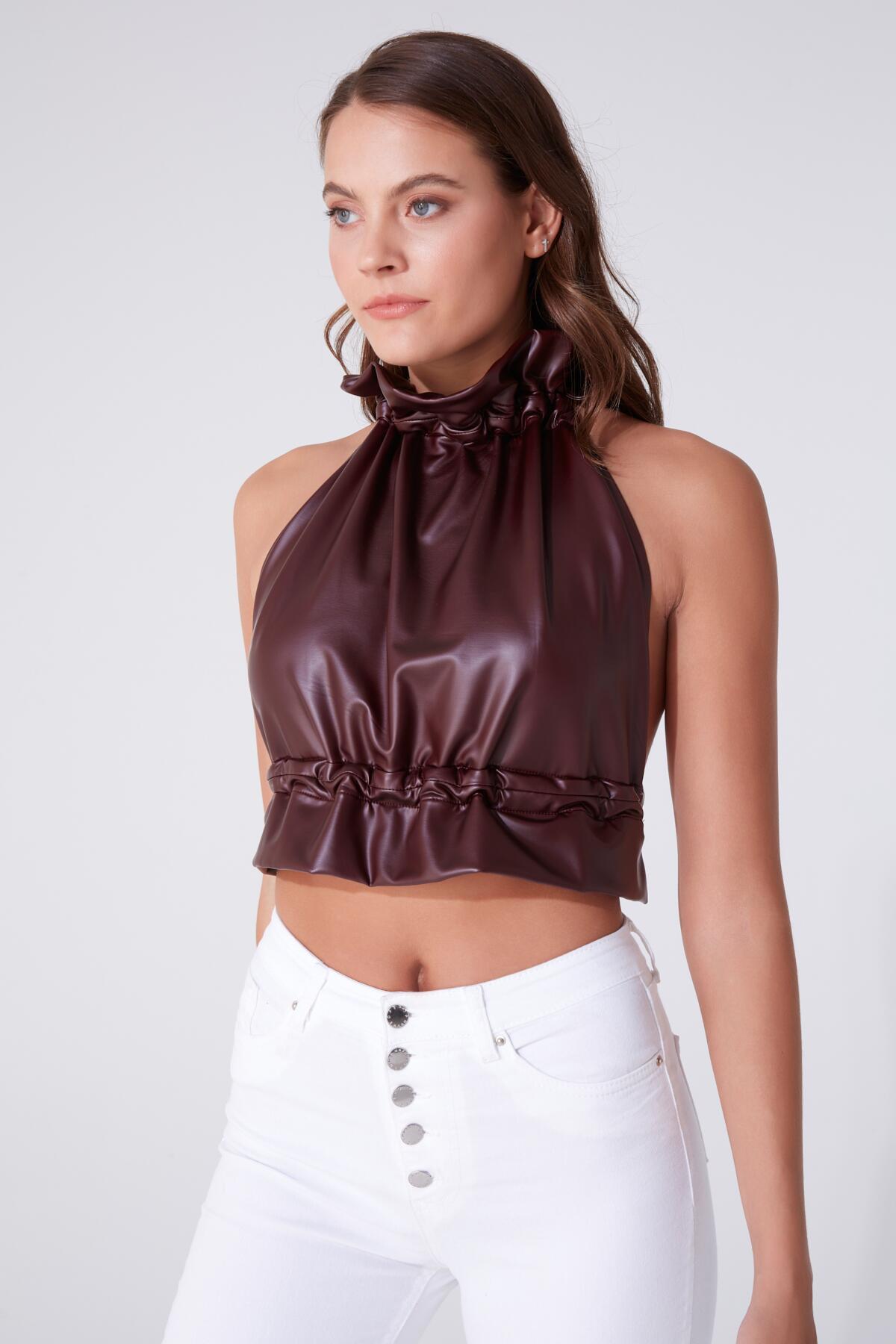Modellinformationen Höhe: 1,79 Brust: 83 Taille: 61 Hüfte: 89 Produktinformation Stoff: Dünnes Leder Probengröße: 36 Farbe : Burgund AUFGRUND DER KOMPAKTAUFNAHME KÖNNEN FARBTÖNE ABWEICHEN.
