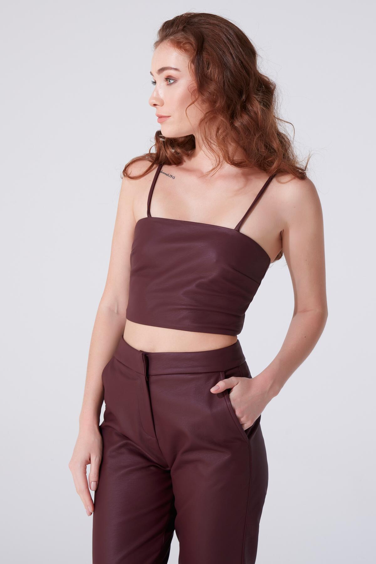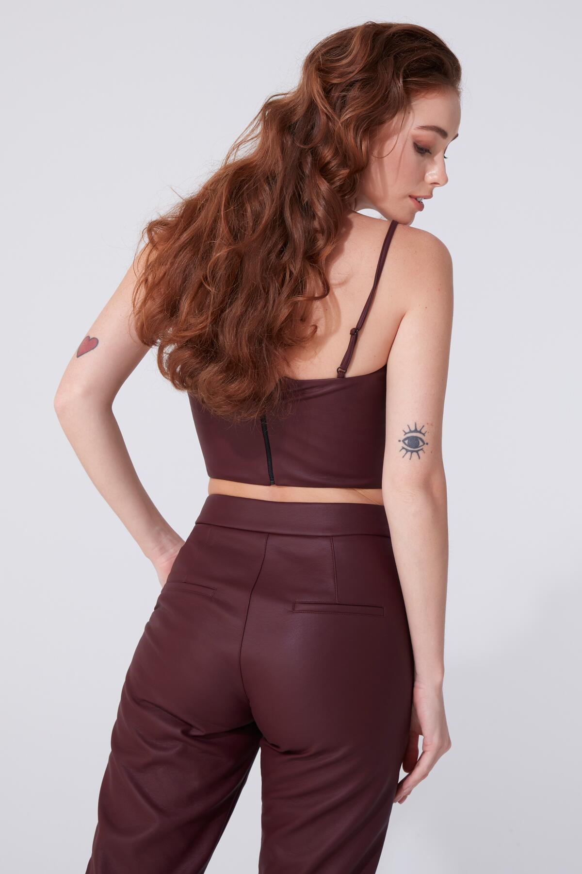 Modellinformationen Höhe: 1,73 Brust: 83 Taille: 60 Hüfte: 89 Produktinformation Stoff : Leder Probengröße: 34 Farbe : Burgund AUFGRUND DER KOMPAKTAUFNAHME KÖNNEN FARBTÖNE ABWEICHEN.