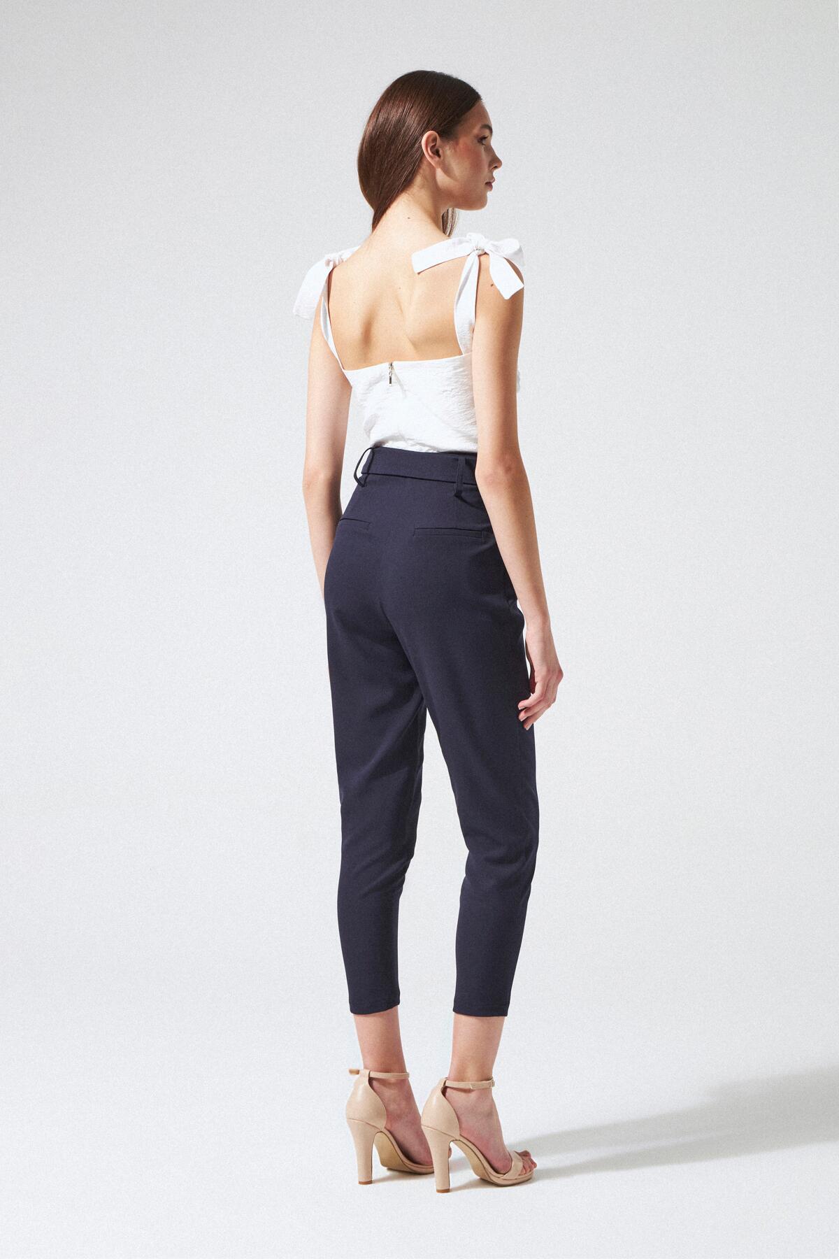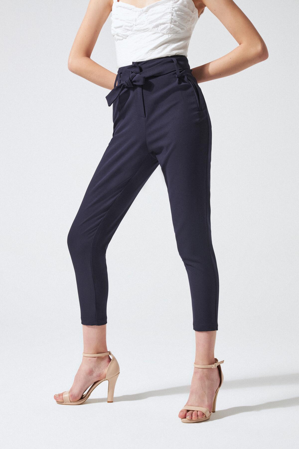 Dunkelblaue High-Waist Haremshose mit Taillengürtel