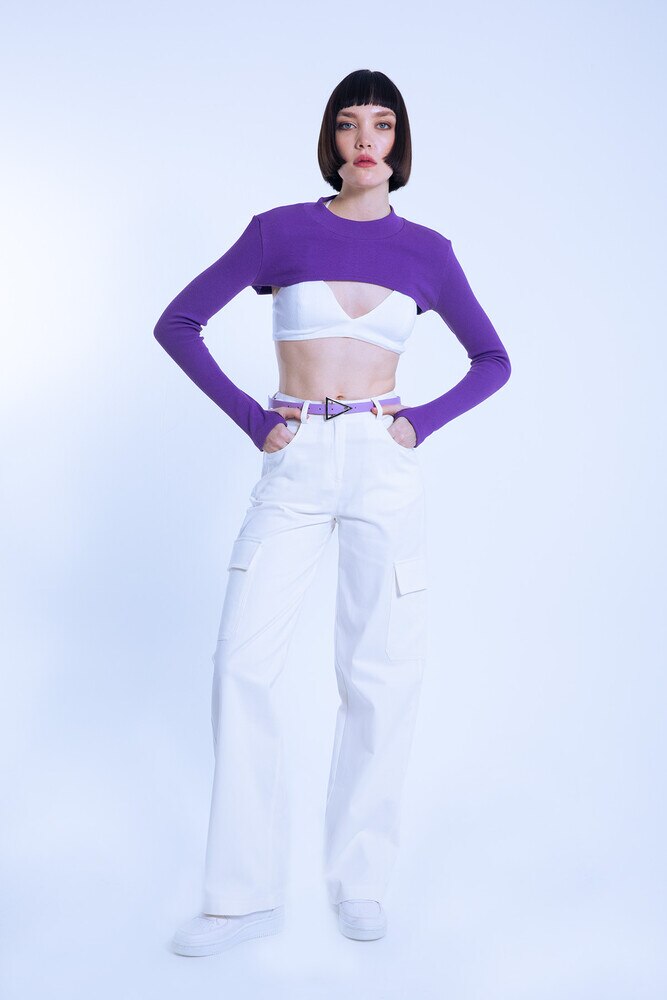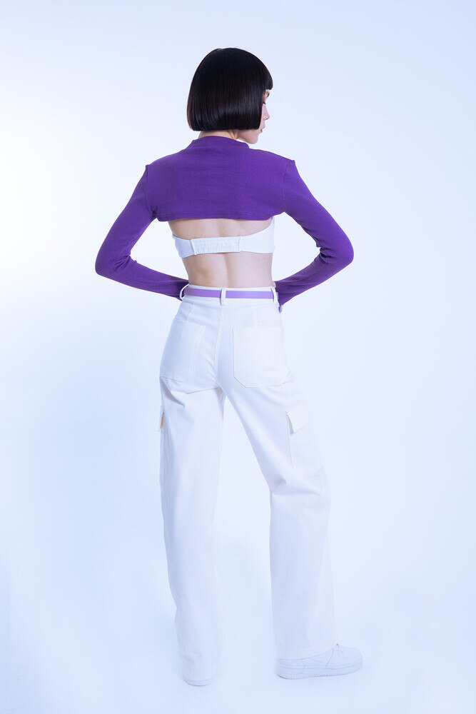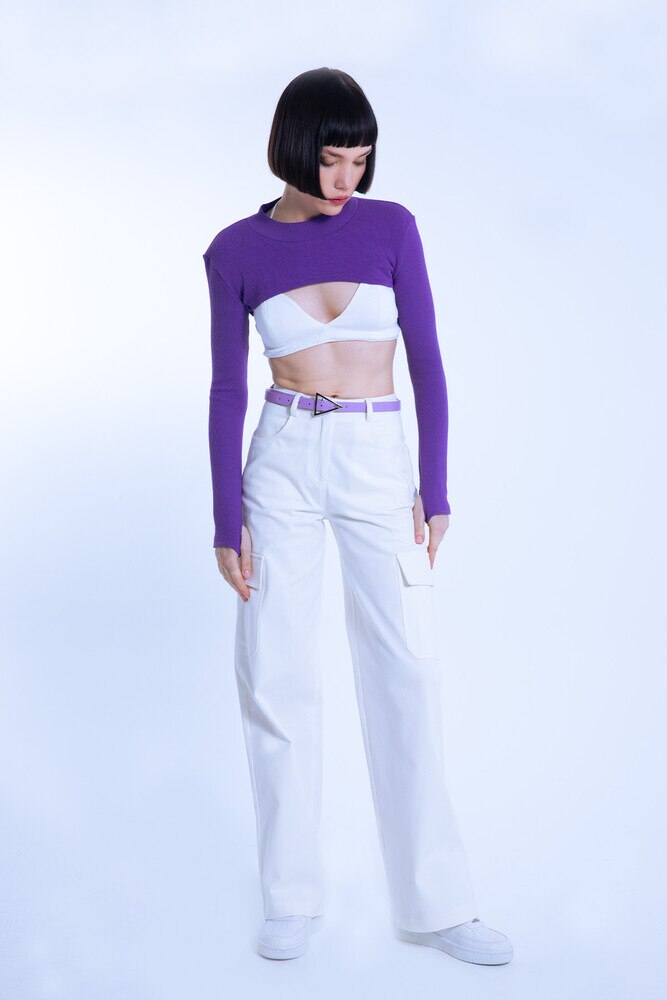 ECRU HOSE MIT HOHEM BUND UND CARGO-TASCHEN
