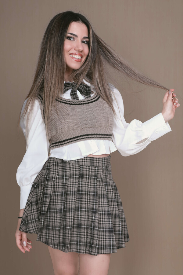 Kış stilinizi bir üst seviyeye taşıyacak bu şık kombin, zarif vizon tonlarıyla modern ve sofistike bir hava yaratıyor. ? Vizon pileli deri etek, feminen bir dokunuş sunarken, aynı renkten deri yelek ise vücuda oturan kesimiyle zarif bir siluet oluşturuyor. ✨ Kombini tamamlayan uzun çizmeler, hem rahatlık hem de şıklık açısından mükemmel bir seçim. ? Soğuk havalarda stilinizden ödün vermeden şıklığınızı konuşturabileceğiniz bu kombin, hem günlük şıklık hem de özel davetlerde kullanabileceğiniz zarif bir alternatife dönüşüyor. ❄️