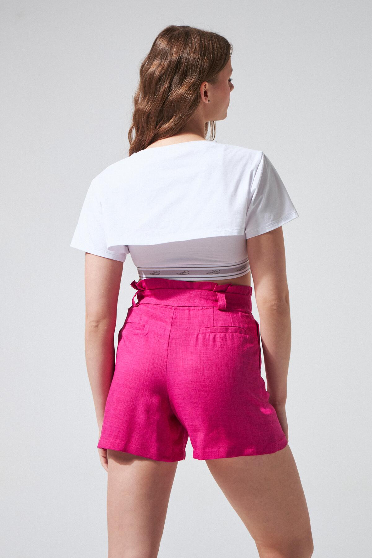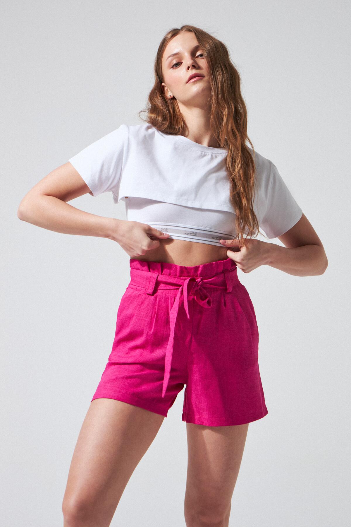 GESTREIFTE LEINEN-SHORTS FUCHIA