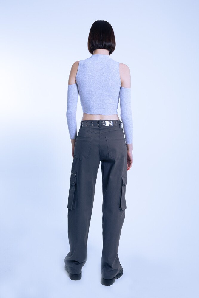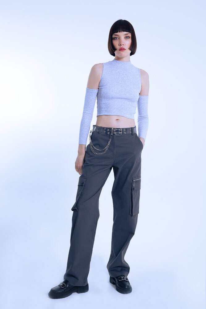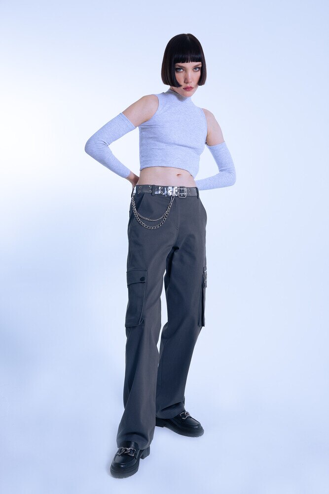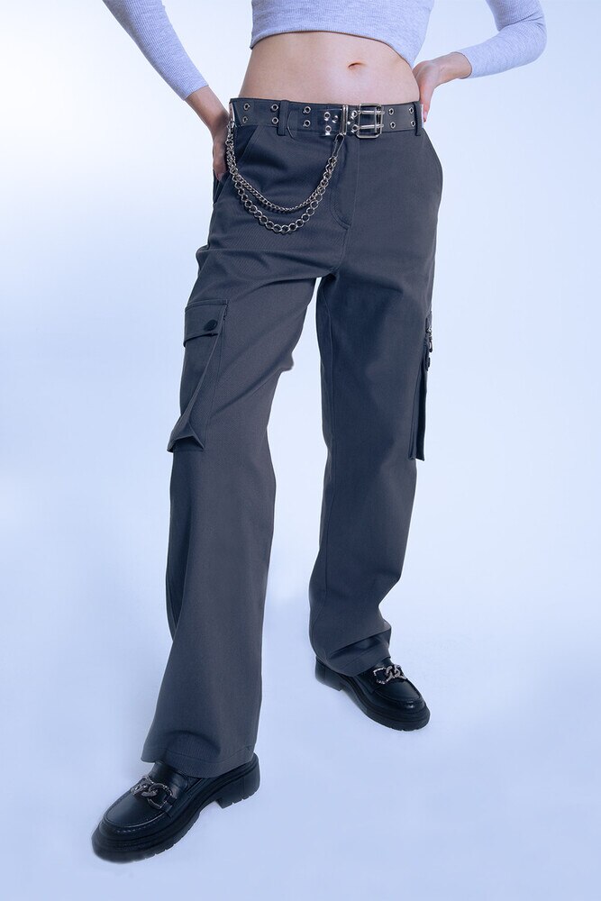 GRAUER REISSVERSCHLUSS DETAILLIERTE OVERSIZE-HOSE MIT NIEDRIGER TAILLE