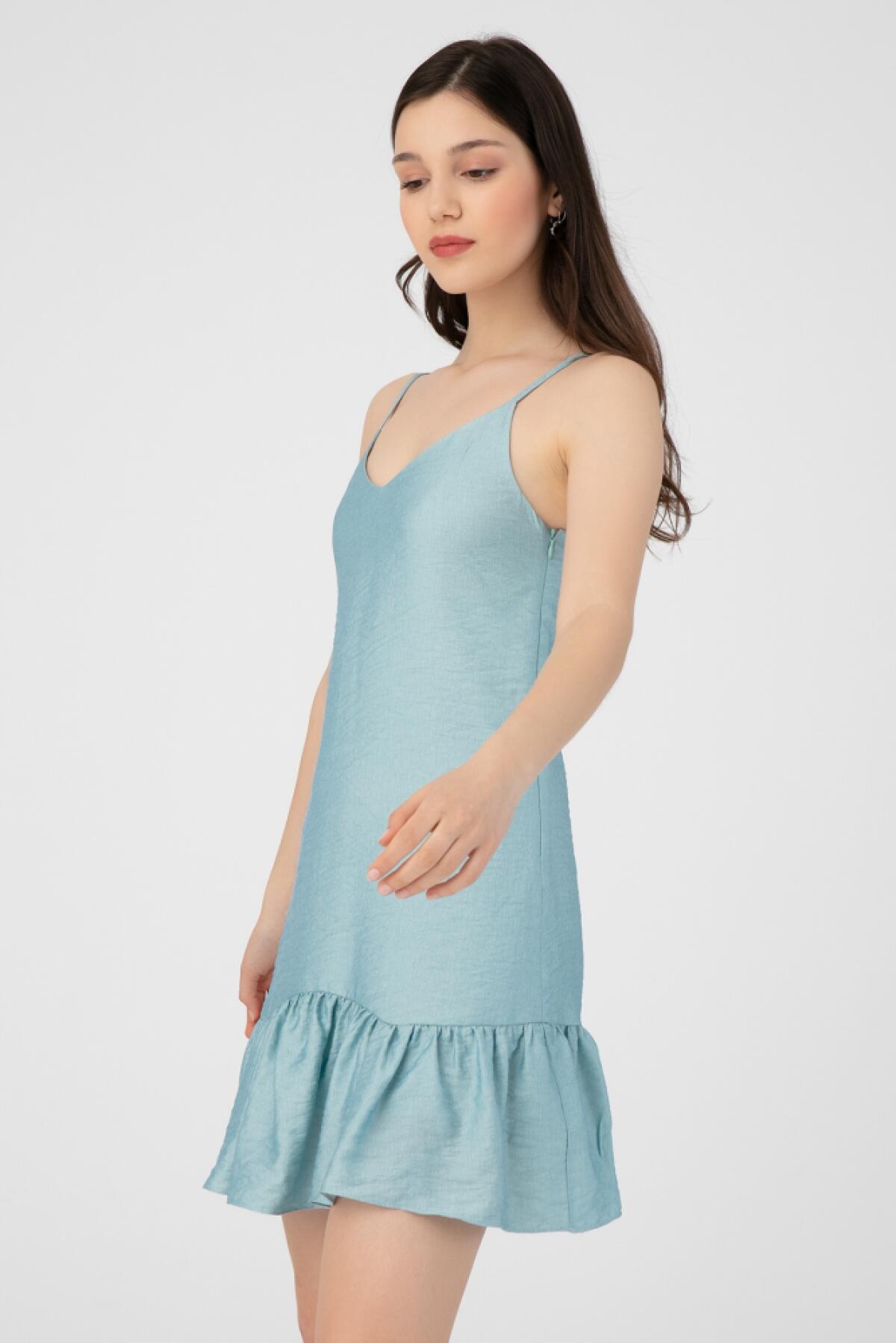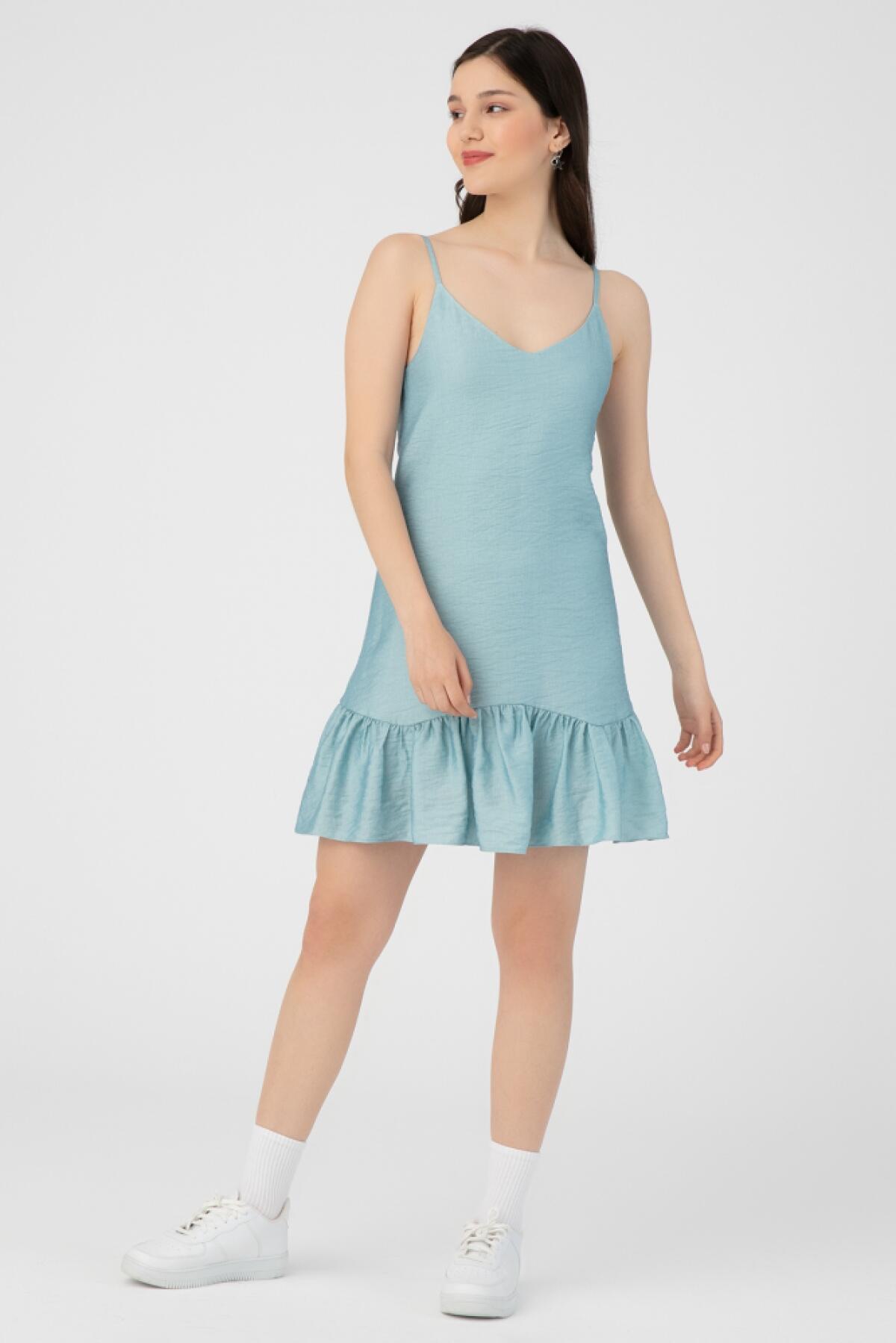 Grünes, mit Rüschen besetztes, trägerloses, lässiges, kurzes Kleid