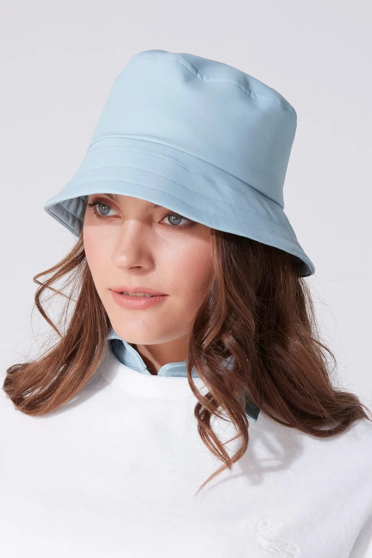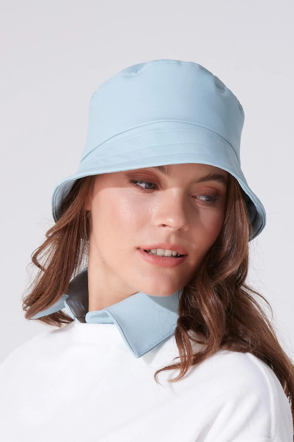 Hellblauer Leder-Bucket-Hut