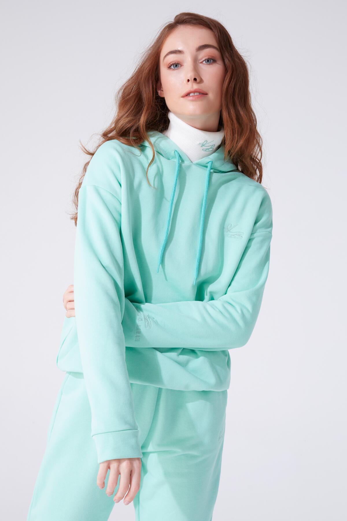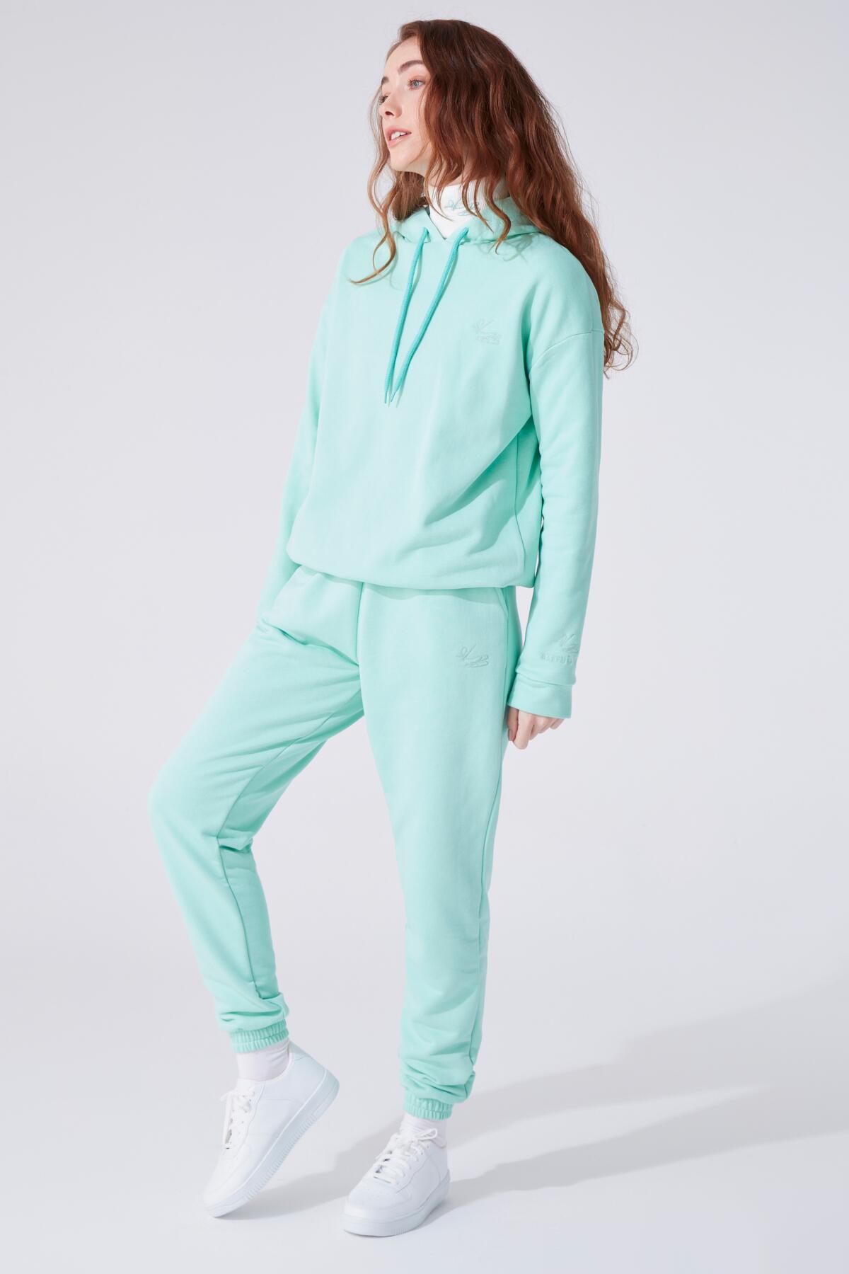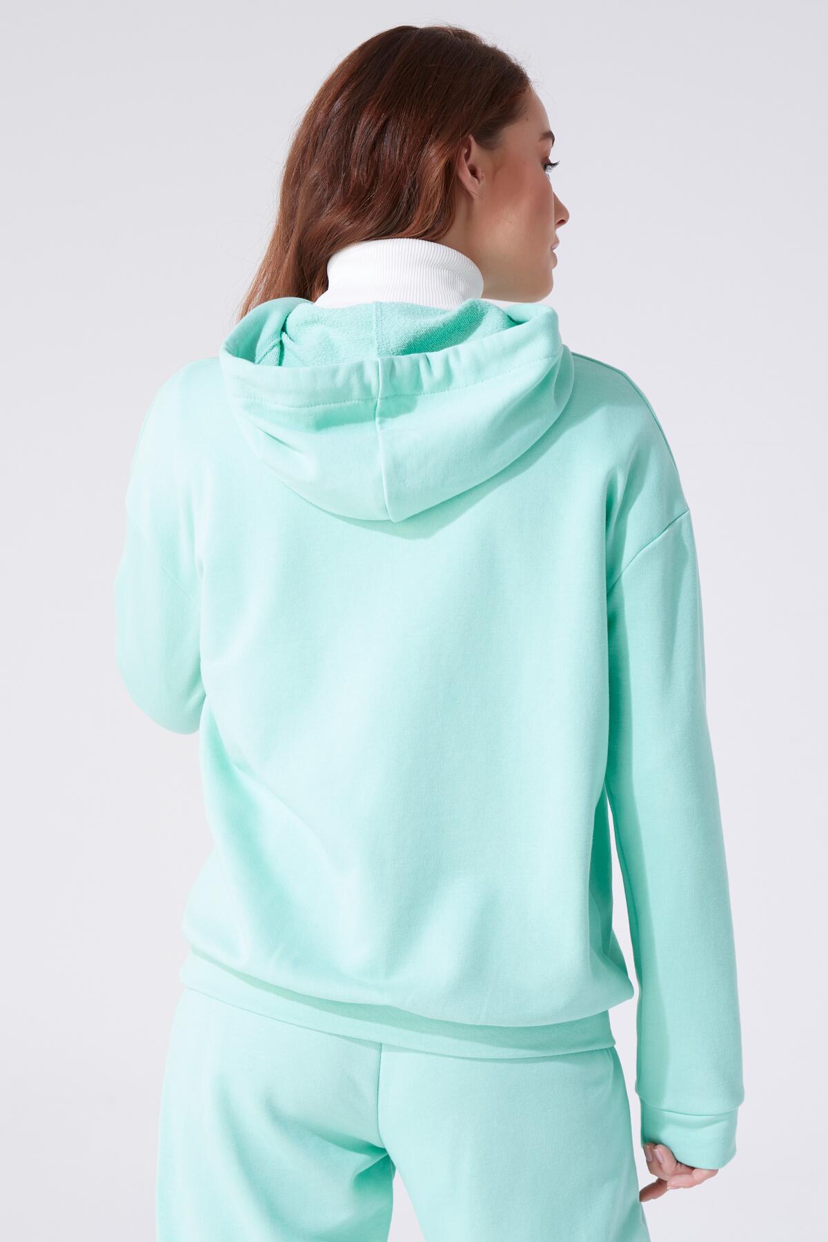 Model Information Height: 1.73 Chest: 83 Waist: 60 Hip: 89 Product Information Fabric: Three Thread Sample Size: 34 Color: Water Green COLOR TONES MAY VARY DUE TO COMPACT SHOOTING.