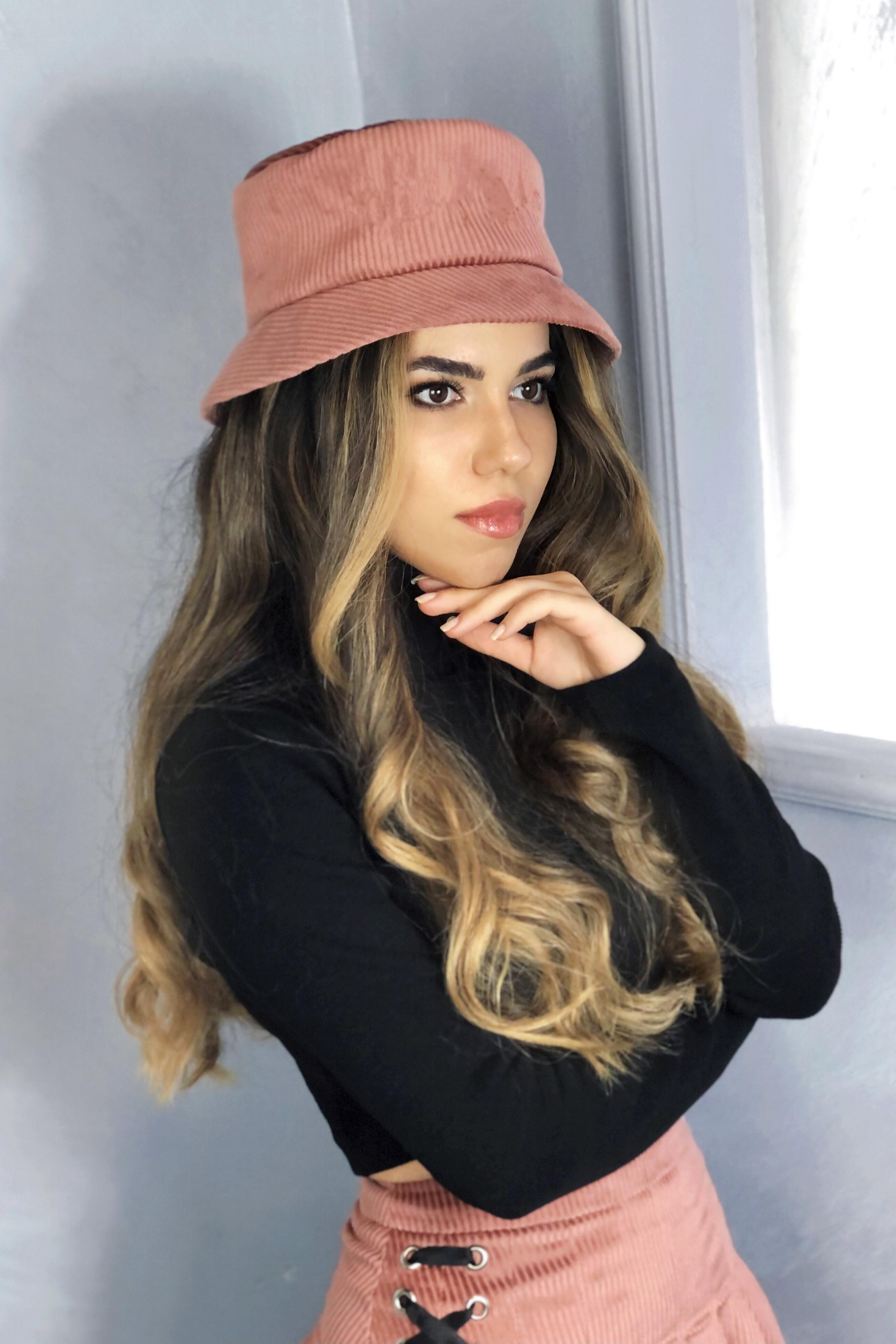 Rosa Samt-Bucket-Hut
