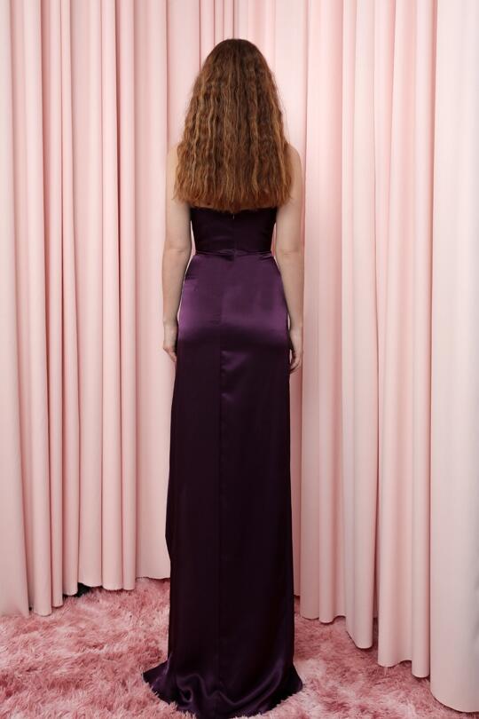 Modellinformationen Höhe: 1,75 Brust: 81 Taille: 64 Hüfte: 91 Produktinformation Stoff : Satin Probengröße: 34 Stoffart: Satin Farbe lila AUFGRUND DER KOMPAKTAUFNAHME KÖNNEN FARBTÖNE ABWEICHEN.