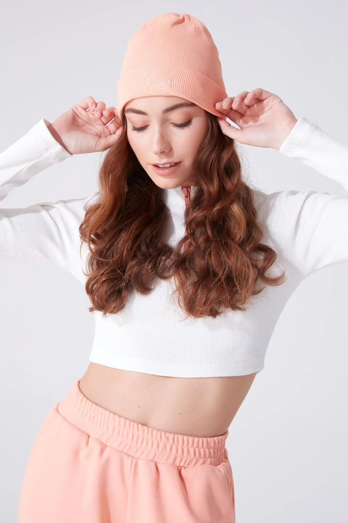 Produktinformation Stoff : Leibchen Hutdurchmesser: 56 cm Farbe : Lachs AUFGRUND DER KOMPAKTAUFNAHME KÖNNEN FARBTÖNE ABWEICHEN.
