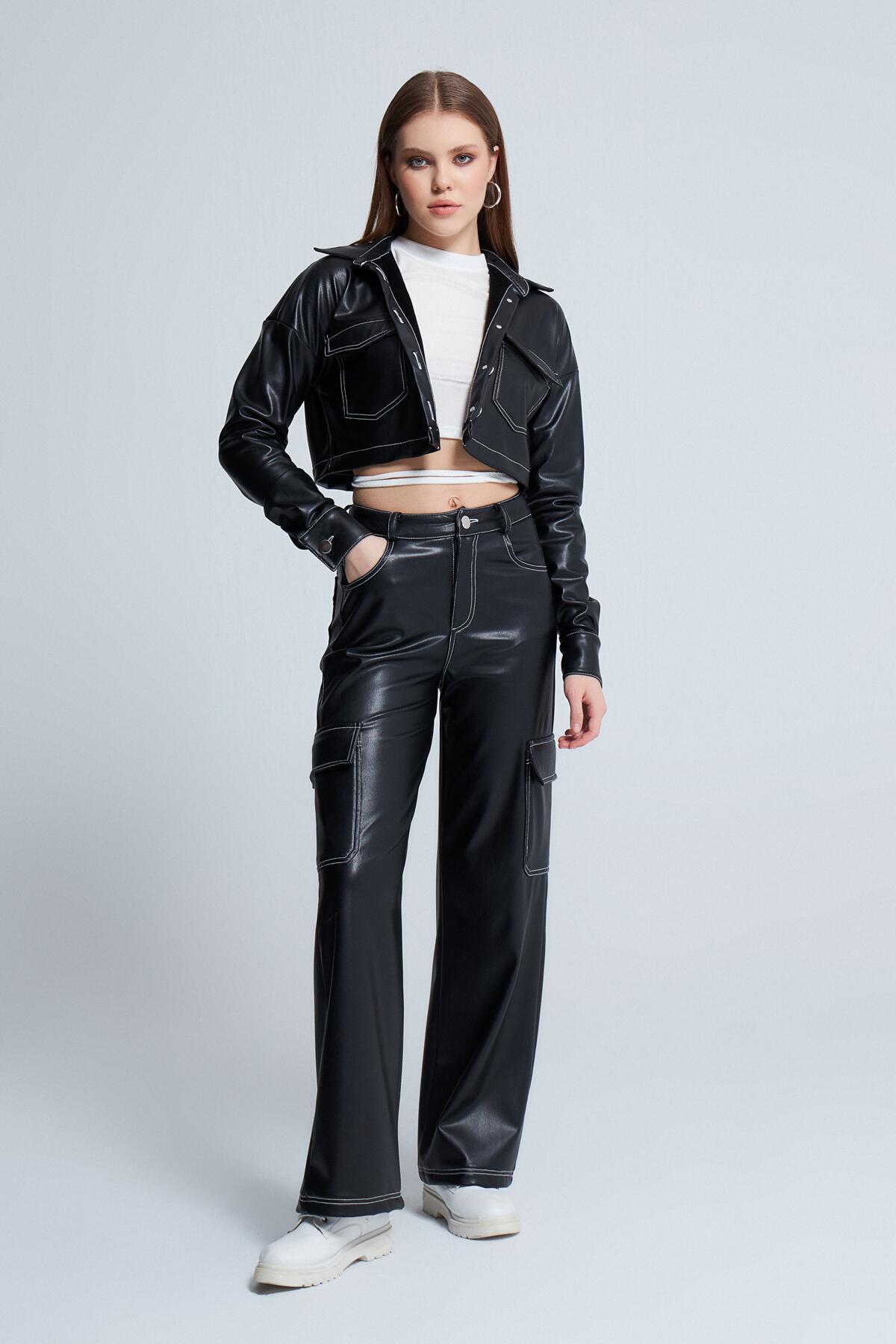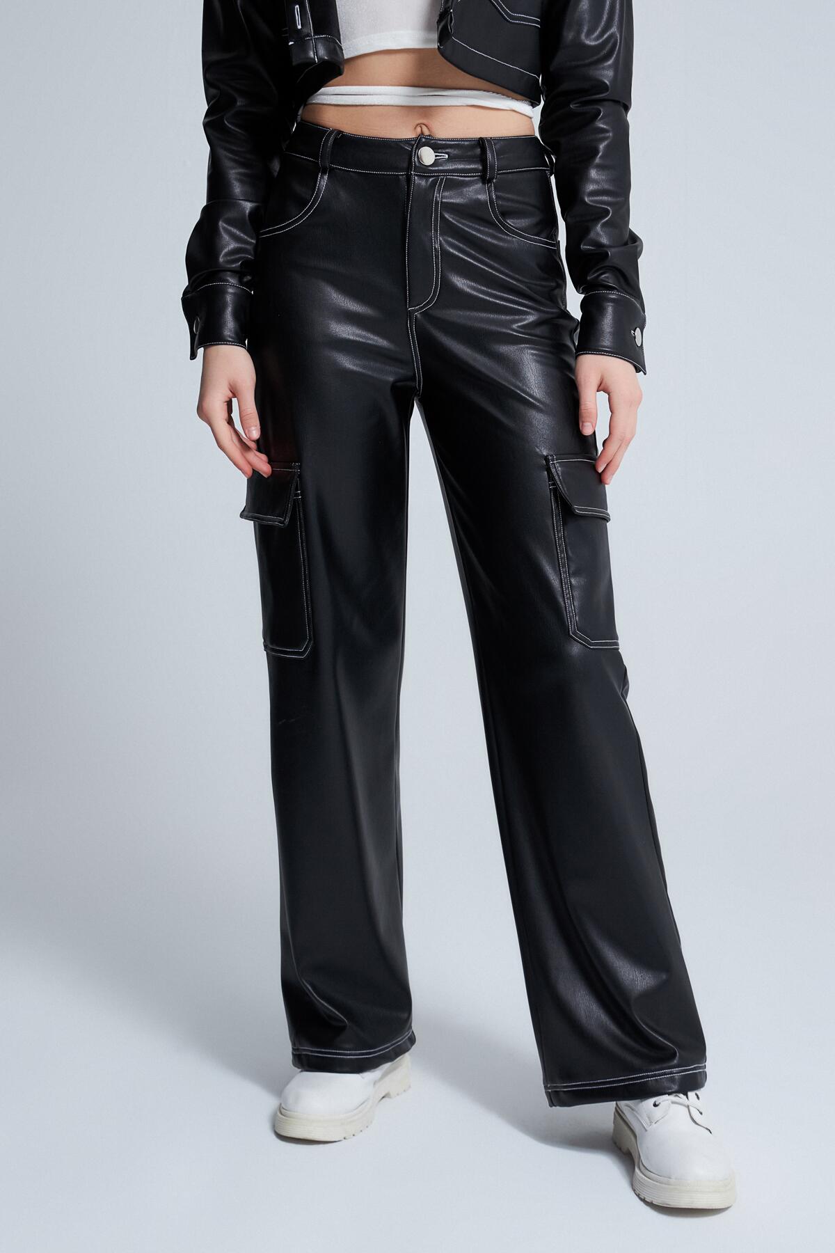 LEDERHOSE MIT HOHEM TAILLE UND WEISSER STICHSTÜCKE