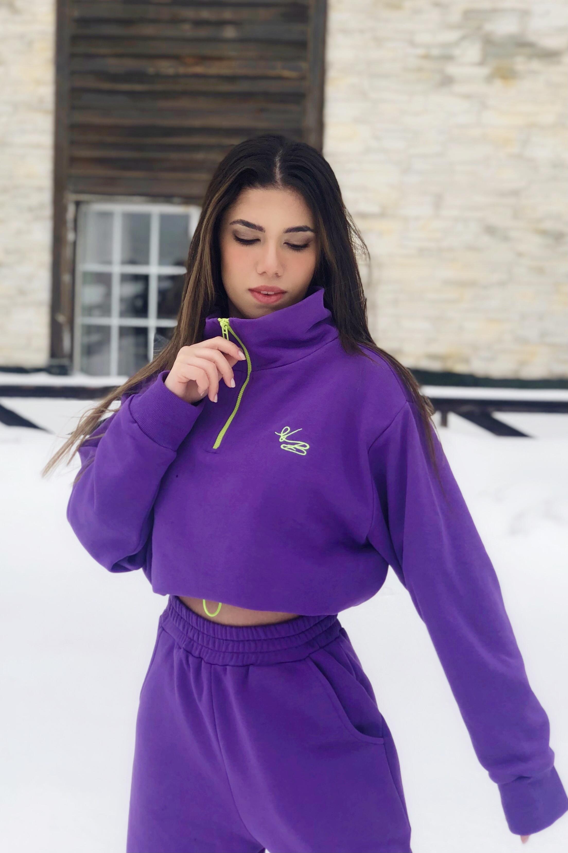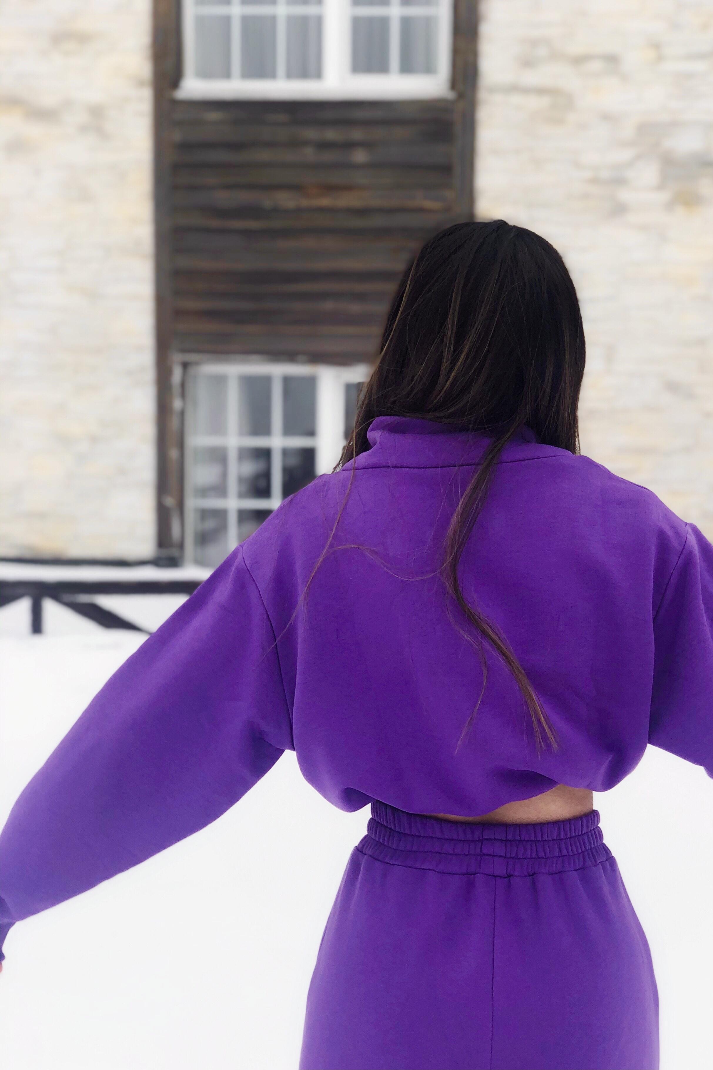 Modellinformationen Brust: 80 Taille: 60 Hüfte: 90 Produktinformation Stoff: Drei Fäden Beispielgrößen Farbe lila AUFGRUND DER KOMPAKTAUFNAHME KÖNNEN FARBTÖNE ABWEICHEN.
