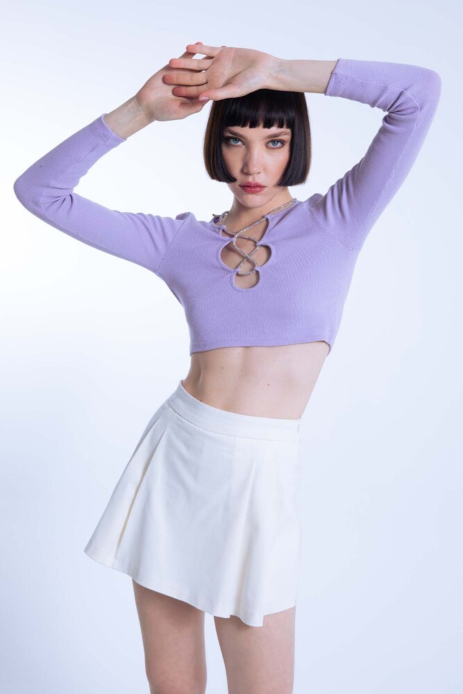 WEIßER SHORTS-ROCK MIT FALTEN VORNE NIEDRIGE TAILLE RÜCKEN