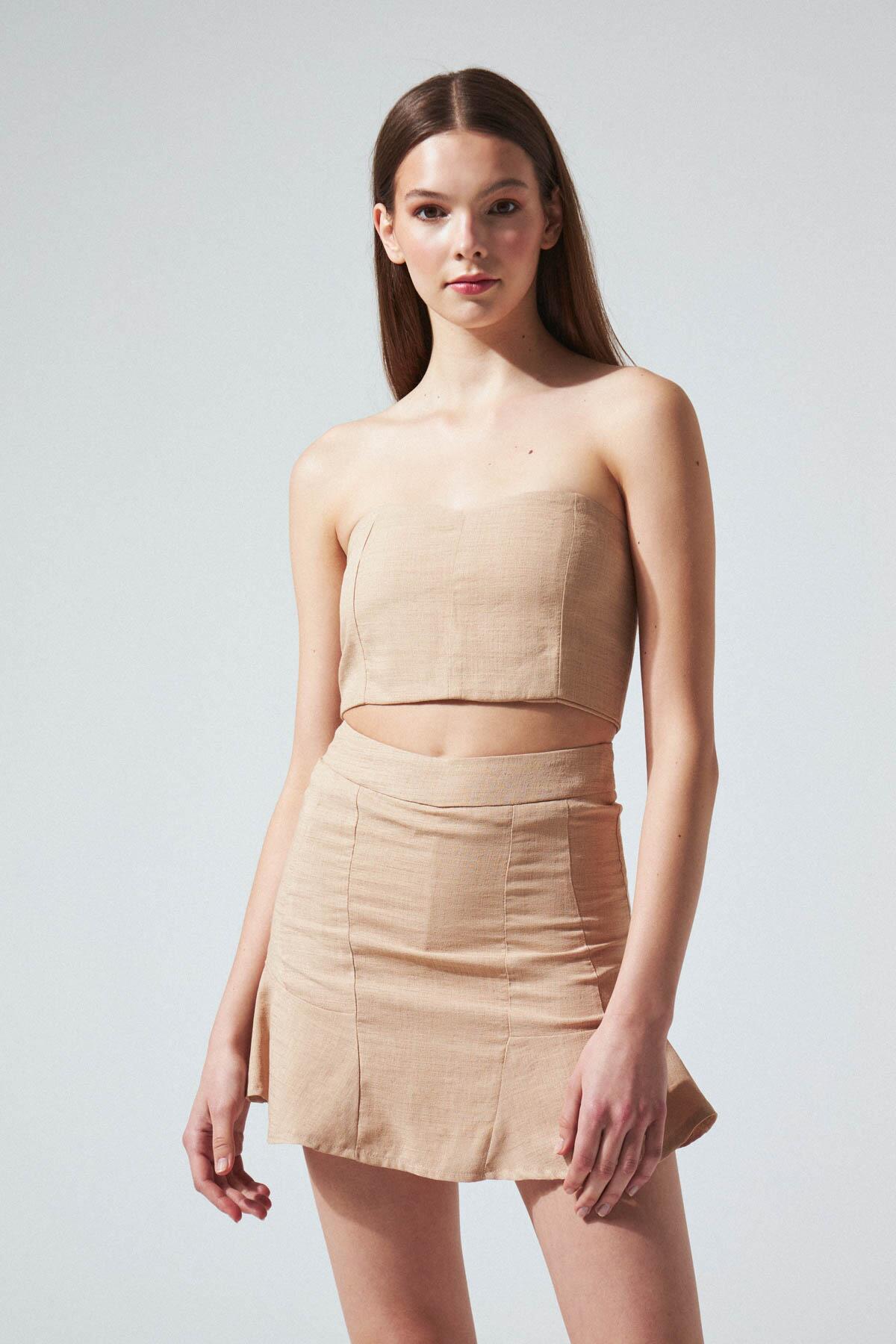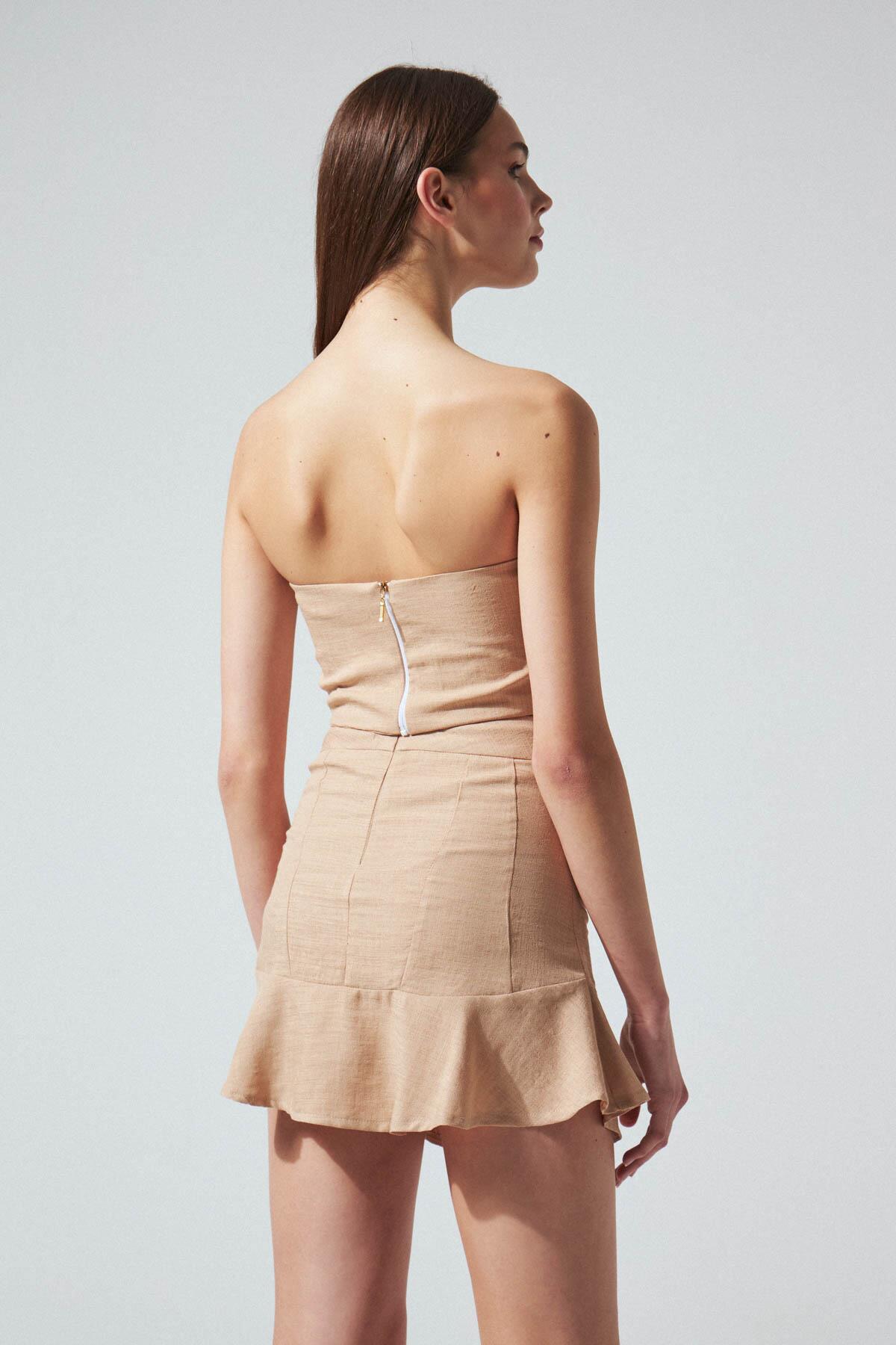 TRÄGERLOSES NERZ-BUSTIER AUS LEINEN