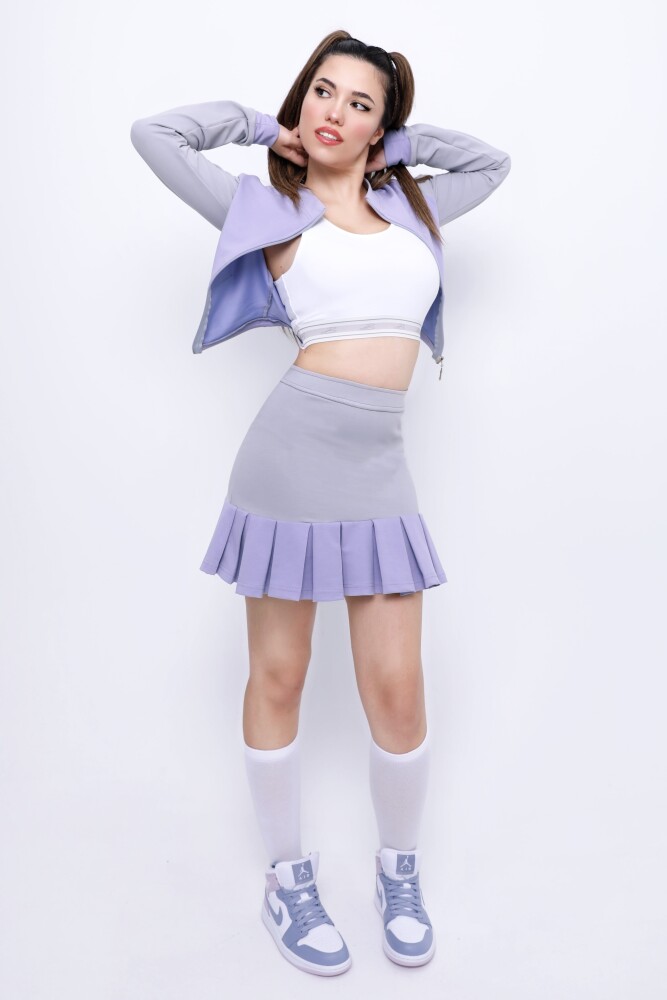 MOR/LİLA BELİ LASTİKLİ FIRFIRLI ŞORT ETEK