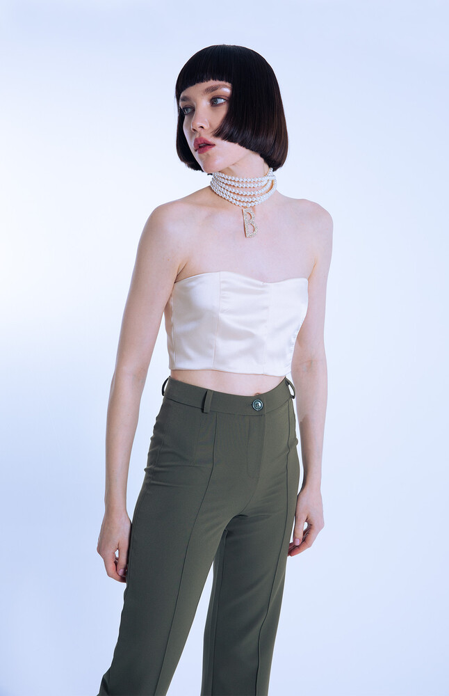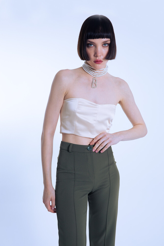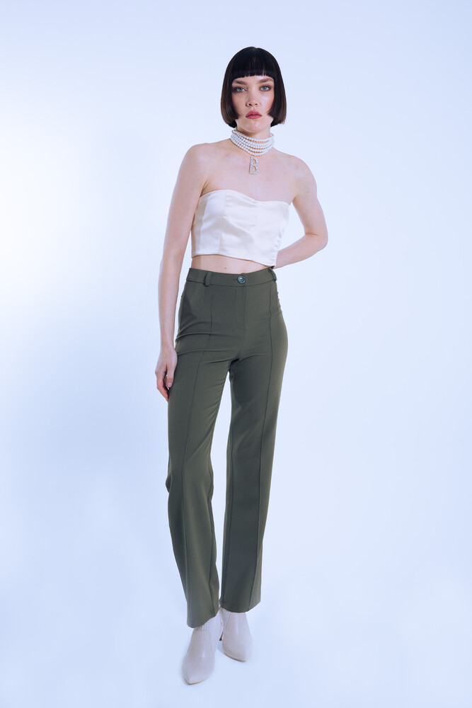 KHAKI KLASSISCHE HOSE MIT VORDERNÄHTEN