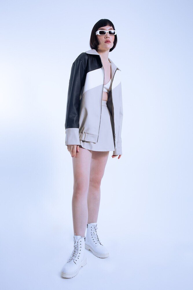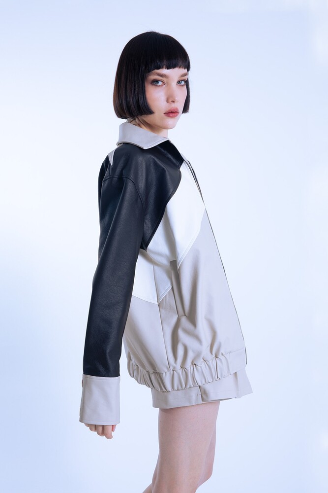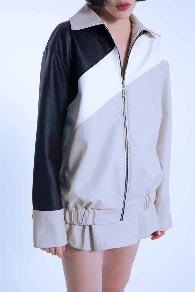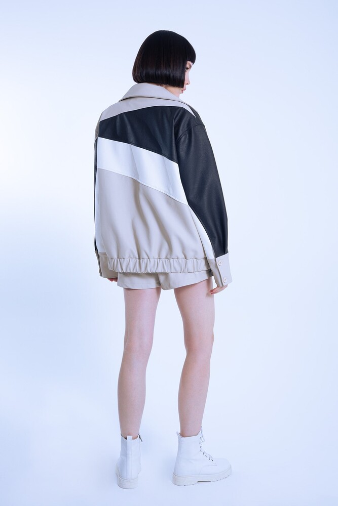 OVERSIZED JACKE MIT NERZLEDER-3-FARBEN-STREIFEN