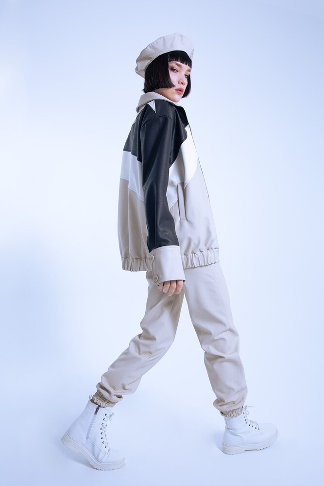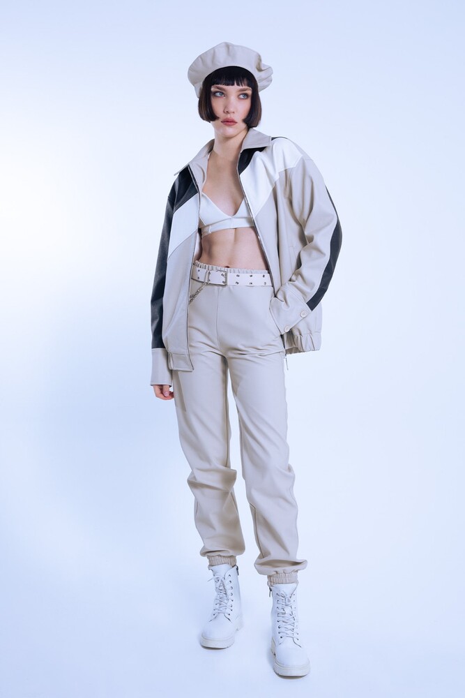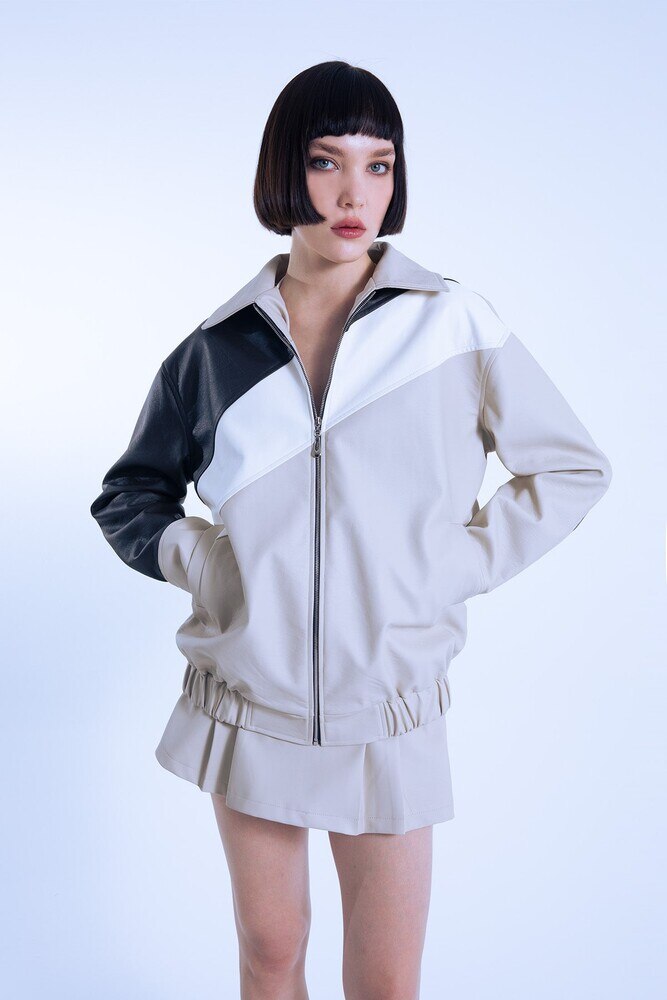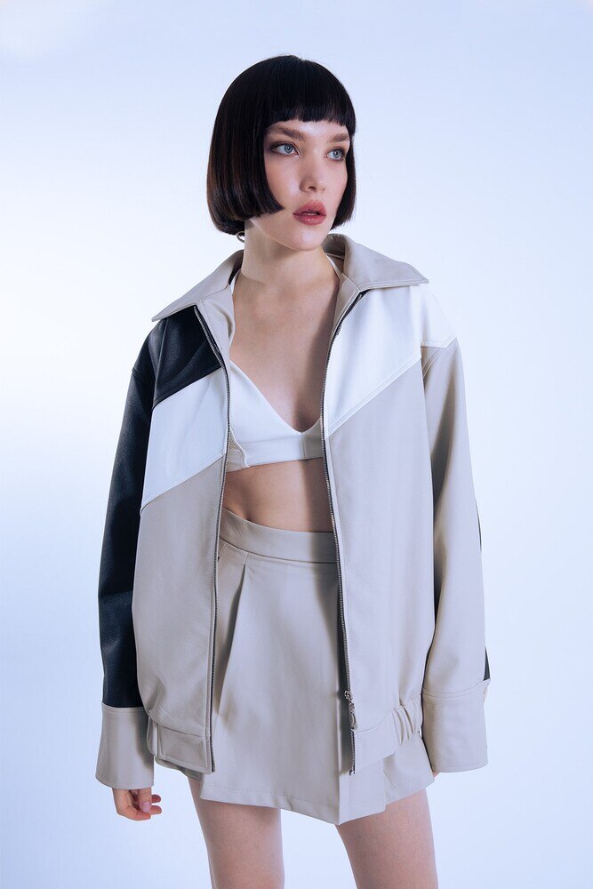 OVERSIZED JACKET WITH MINK LEATHER 3 COLOR STRIPING