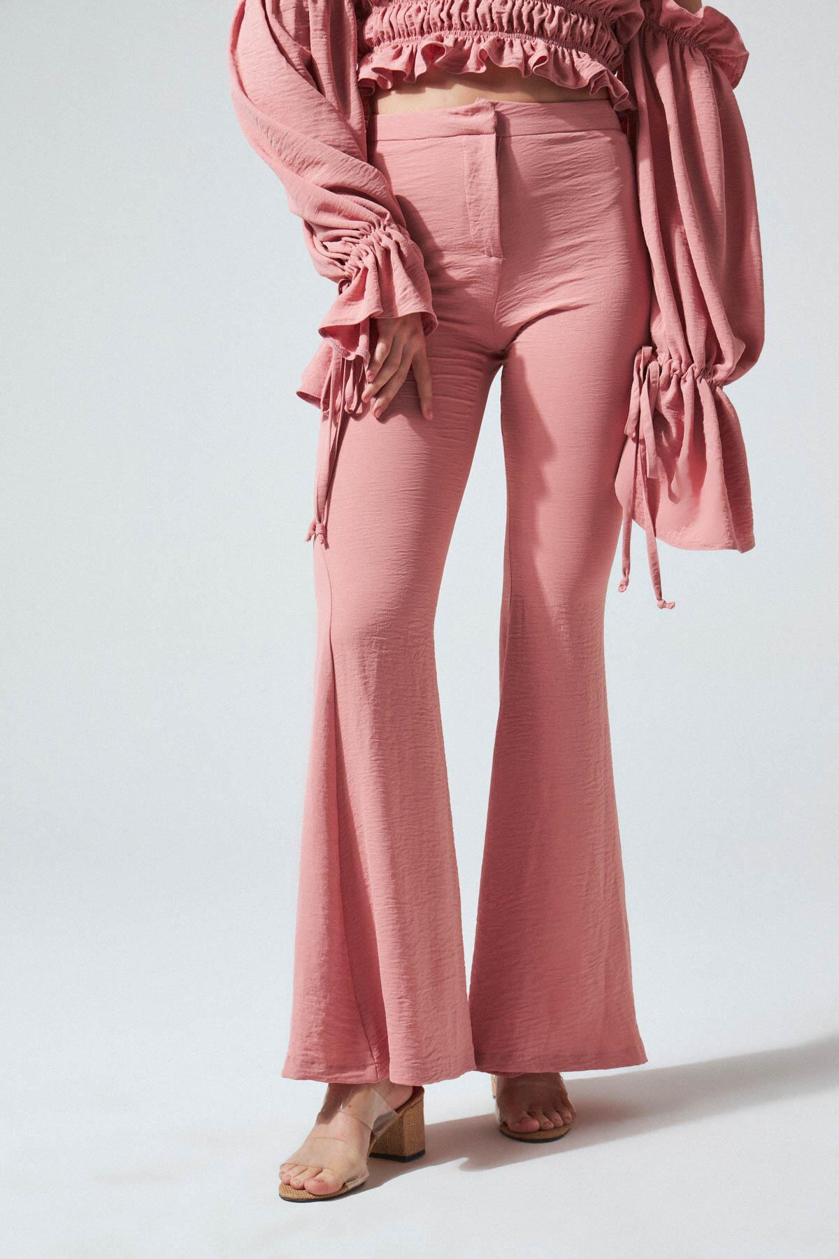 Vizonfarbene High-Waist Hose mit weitem Bein und Cargotaschen