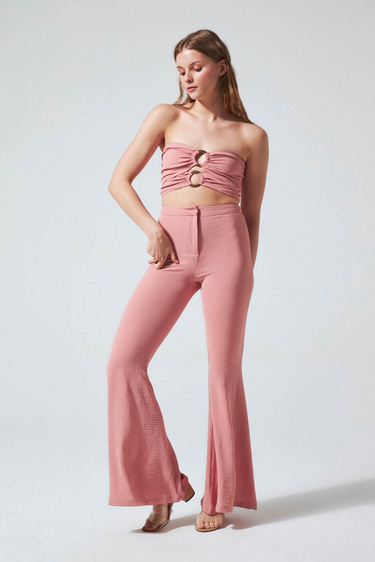 TRÄGERLOSES KURZES BUSTIER PULVER MIT ZWEI SCHNALLEN VORNE