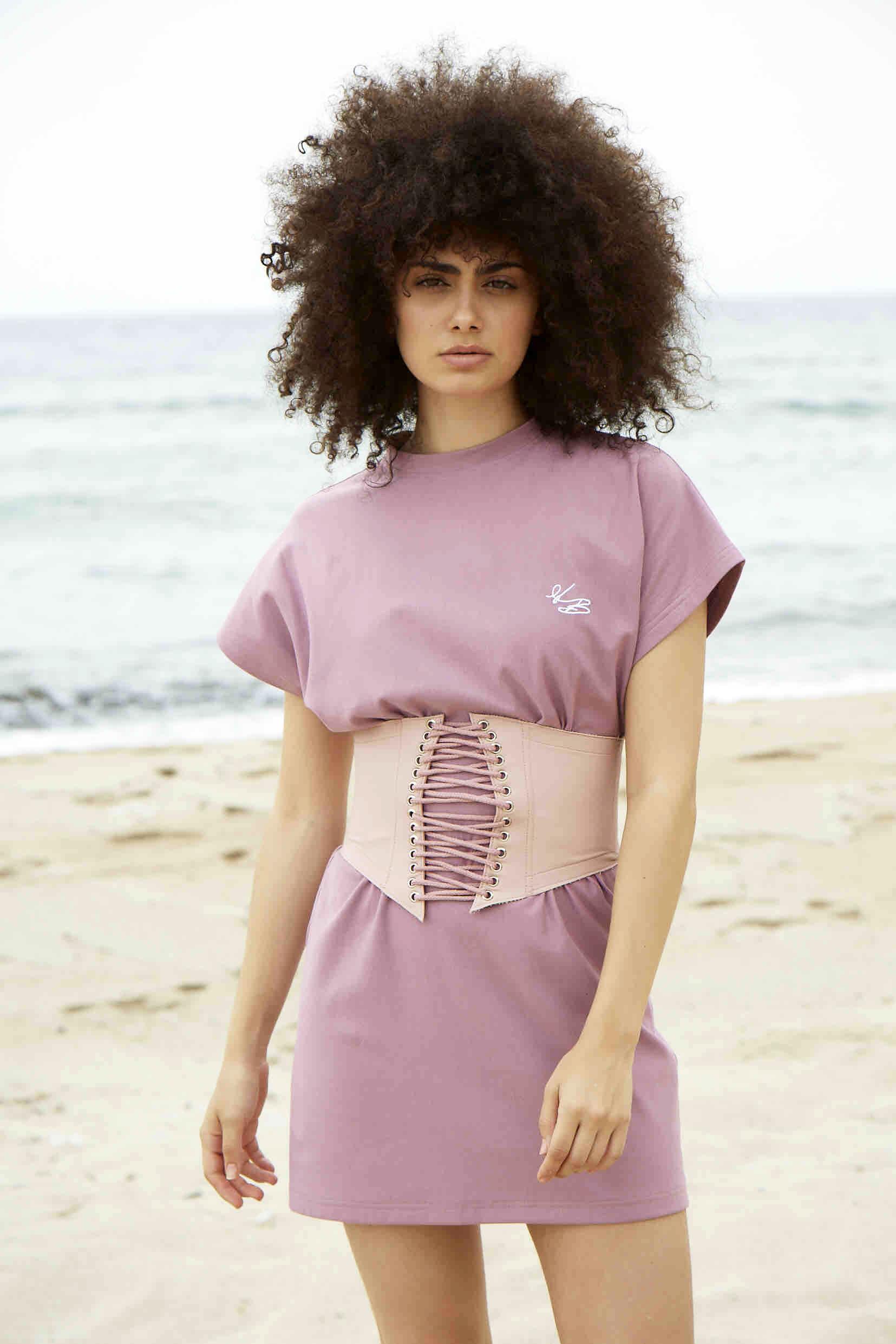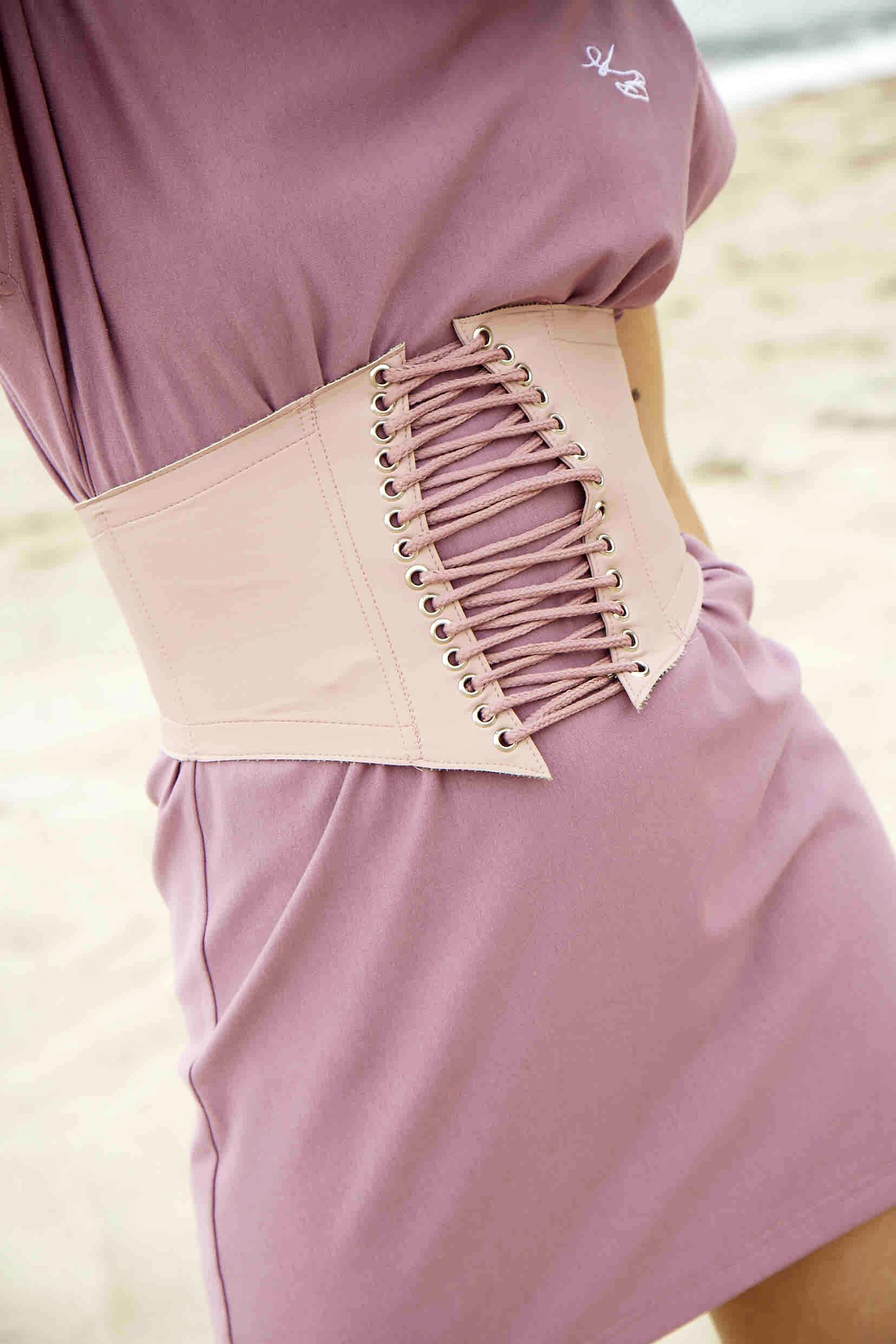 Rosa Ledergürtel mit Kordelzug