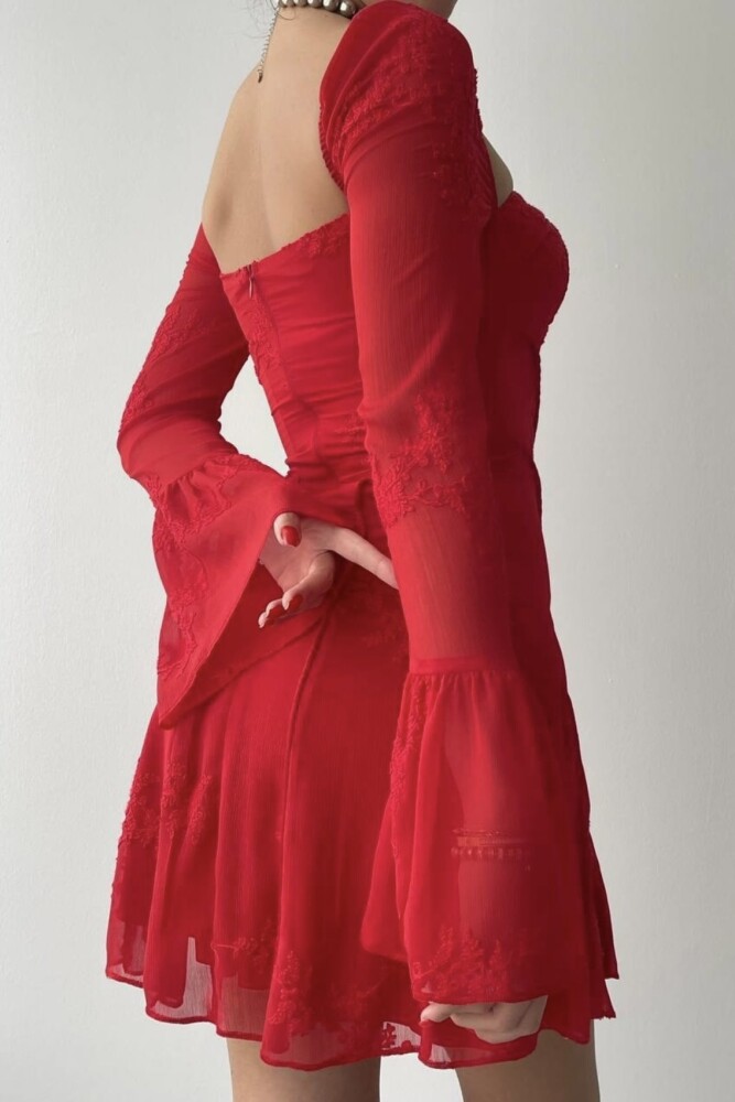 Rotes Kurzarmkleid