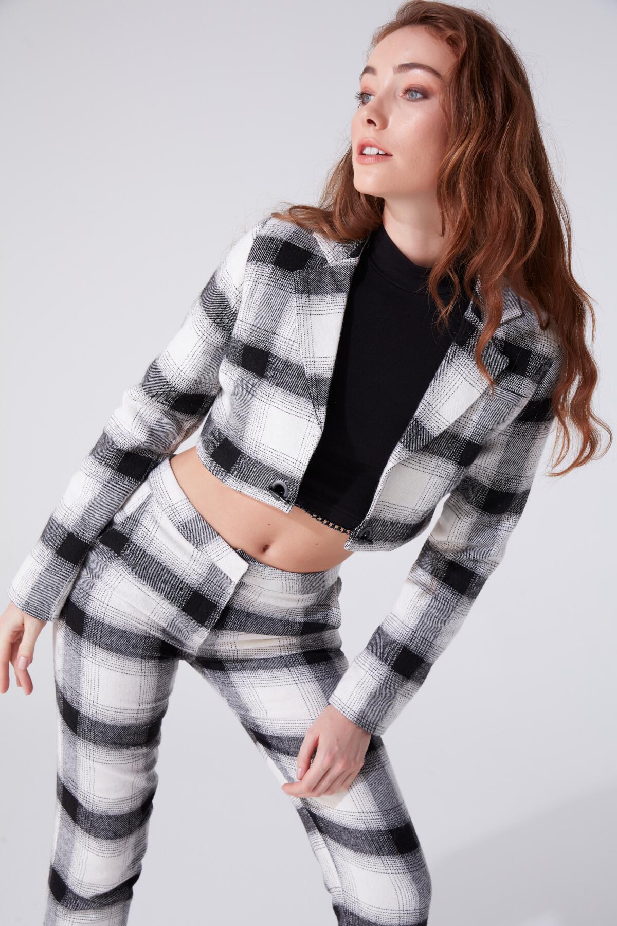 BERFUĞ KIRAN Schwarz-weiße Karomuster Cigarette Hose