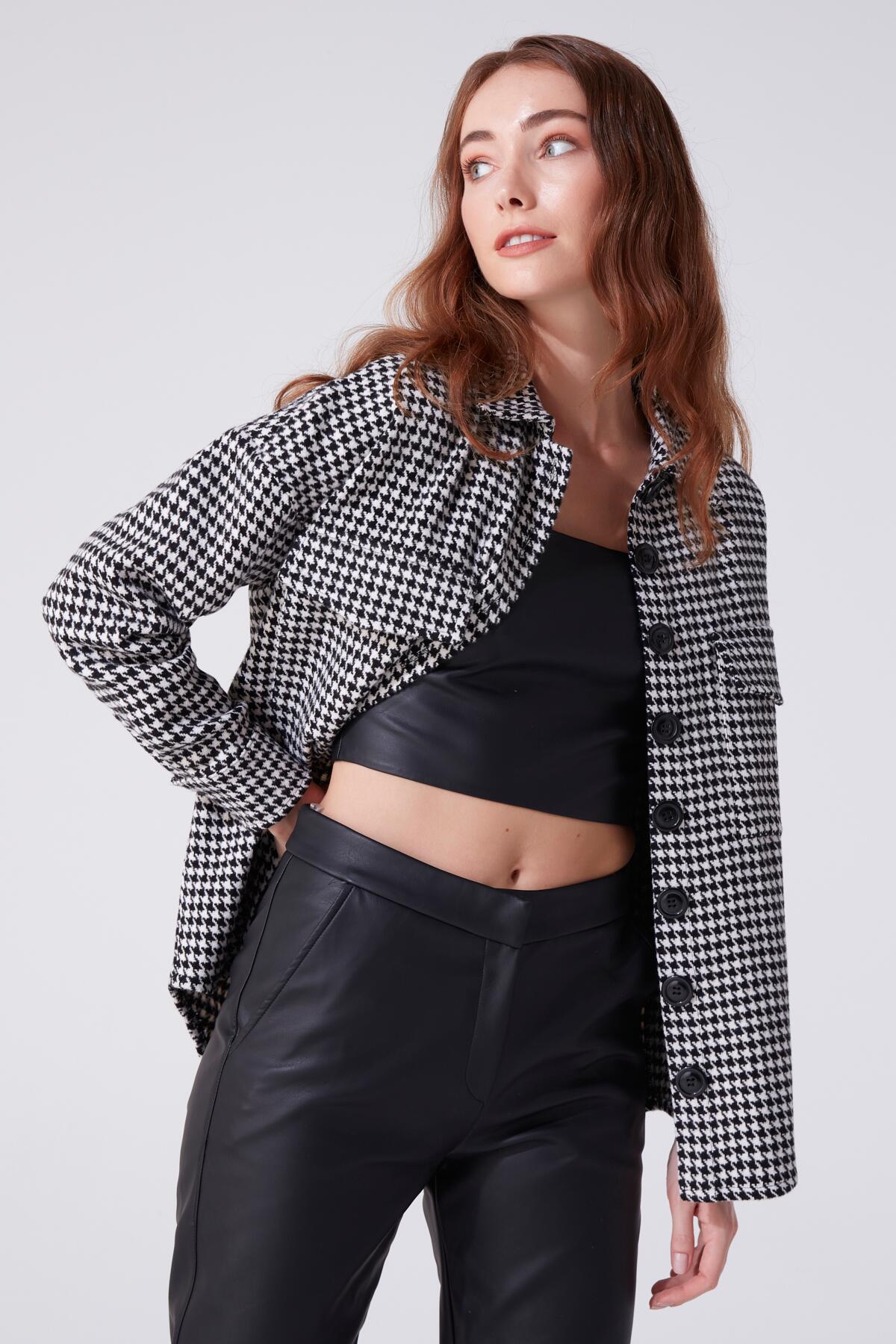 Modellinformationen Höhe: 1,73 Brust: 83 Taille: 60 Hüfte: 89 Produktinformation Stoff : Brecheisen Probengröße: 34 Farbe : Schwarz Weiß AUFGRUND DER KOMPAKTAUFNAHME KÖNNEN FARBTÖNE ABWEICHEN.