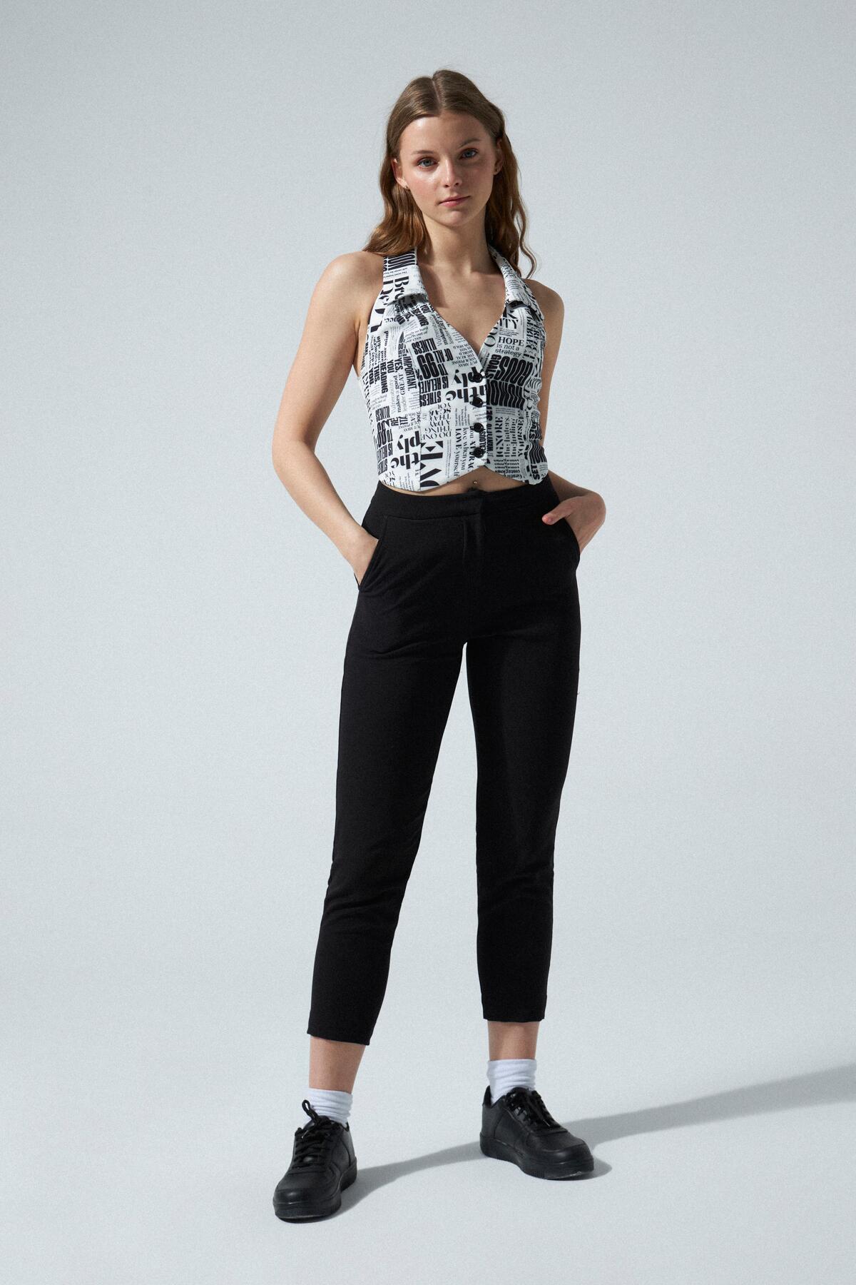 KRAGENDETAILLIERTE GEKNÖPFTE WESTE MIT SCHRIFTMUSTER