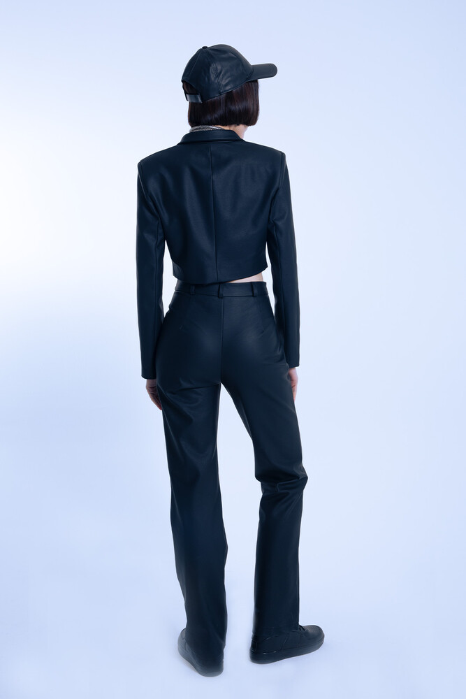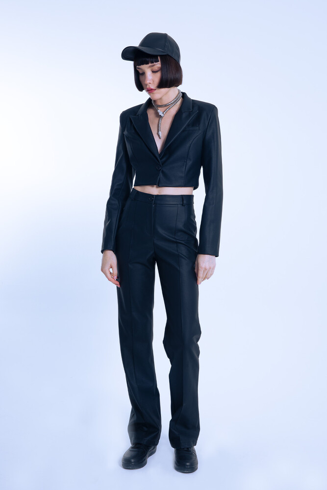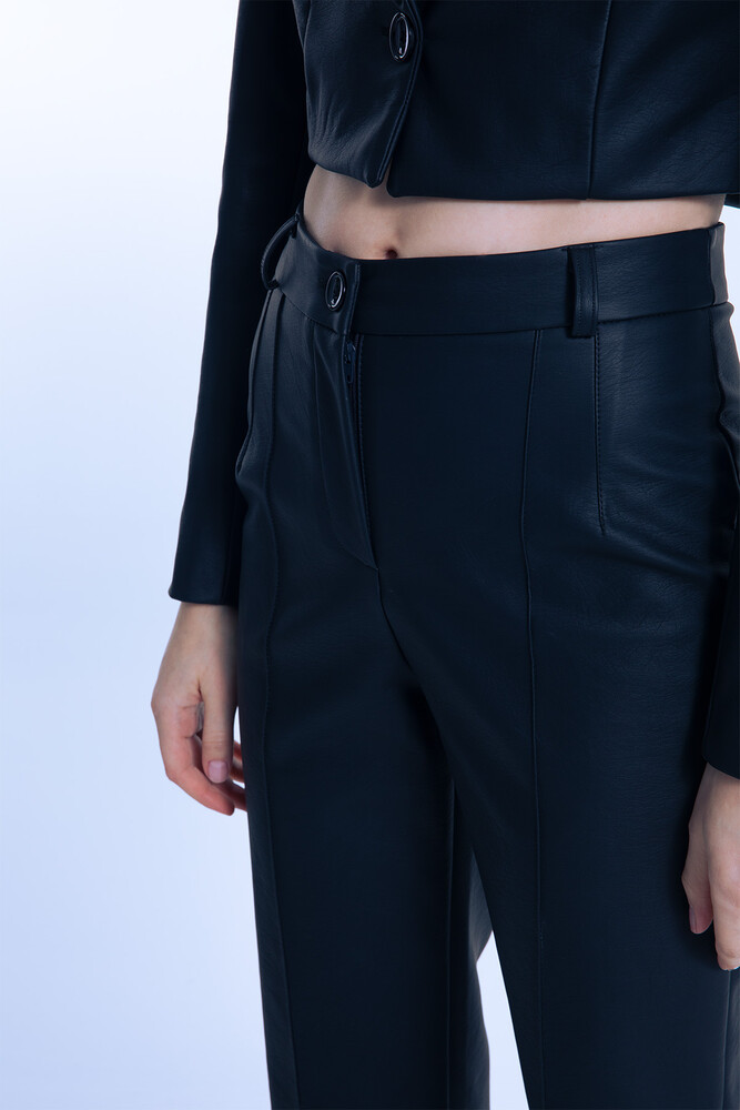 SCHWARZE KLASSISCHE LEDERHOSE MIT VORDERNÄHTEN