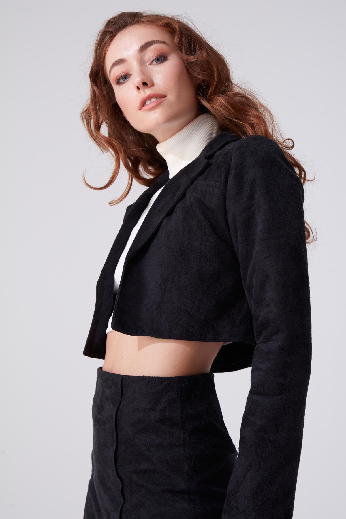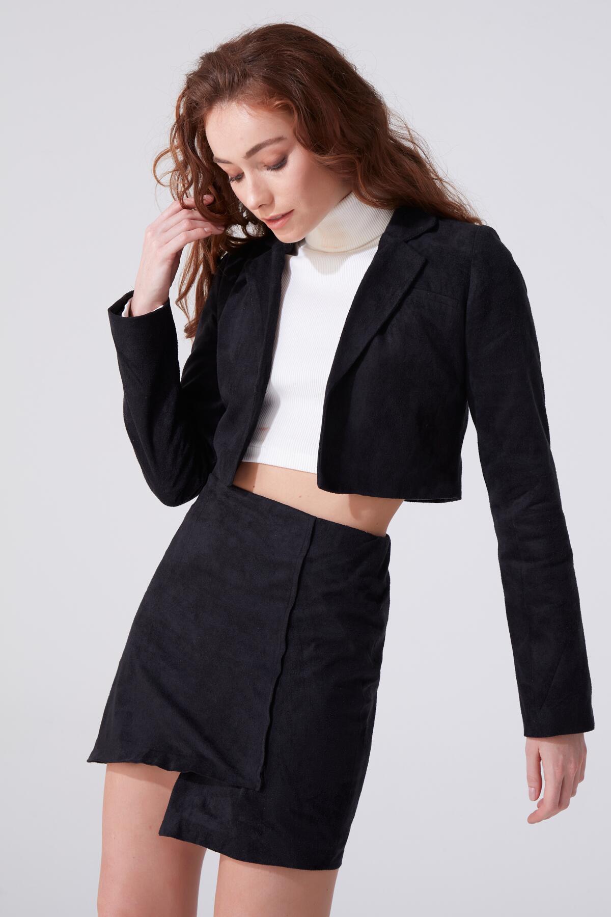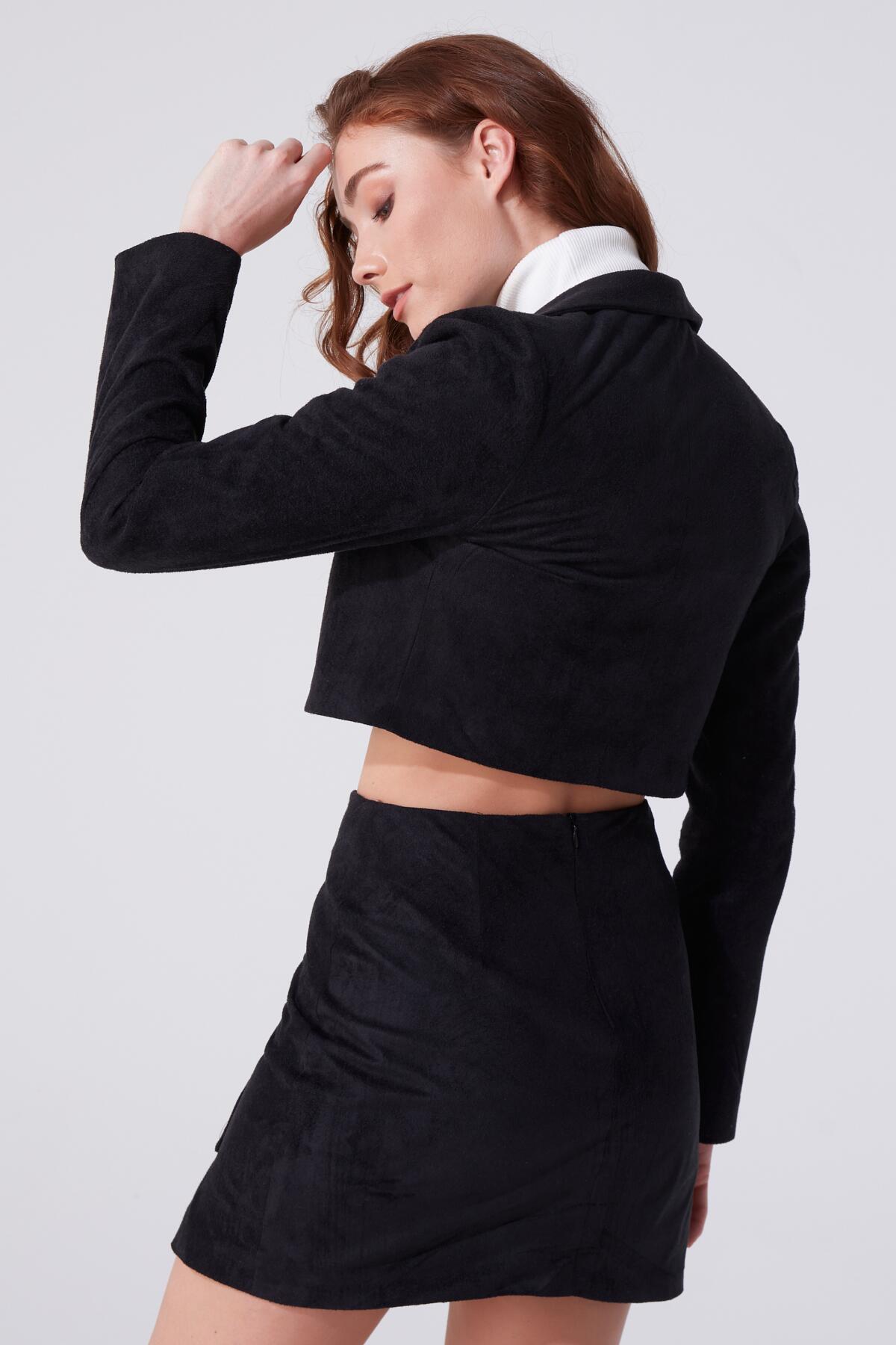 Schwarze kurze Wildlederjacke