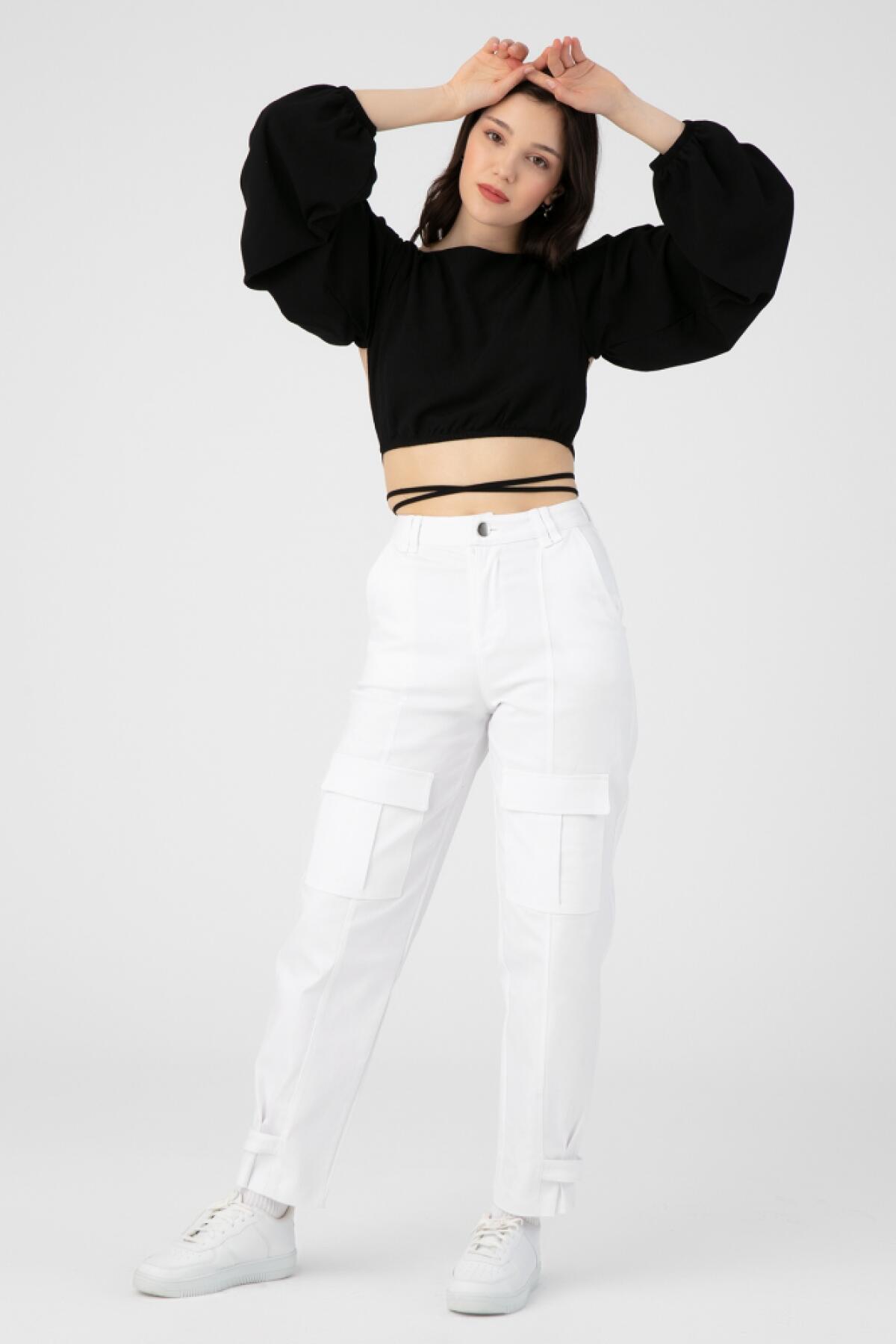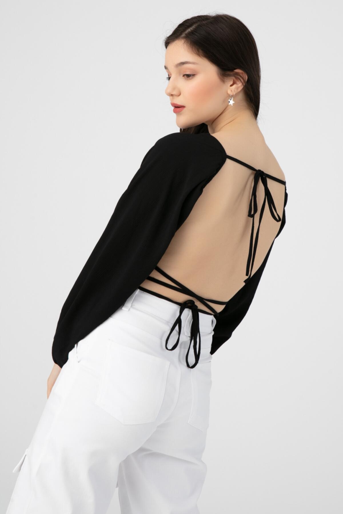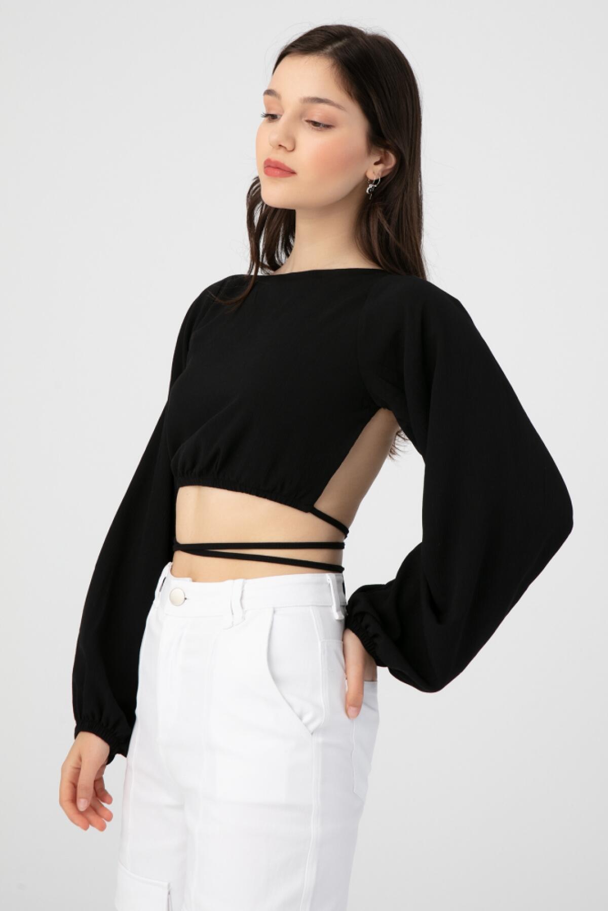 Schwarze Langarmbluse mit Rücken zum Binden