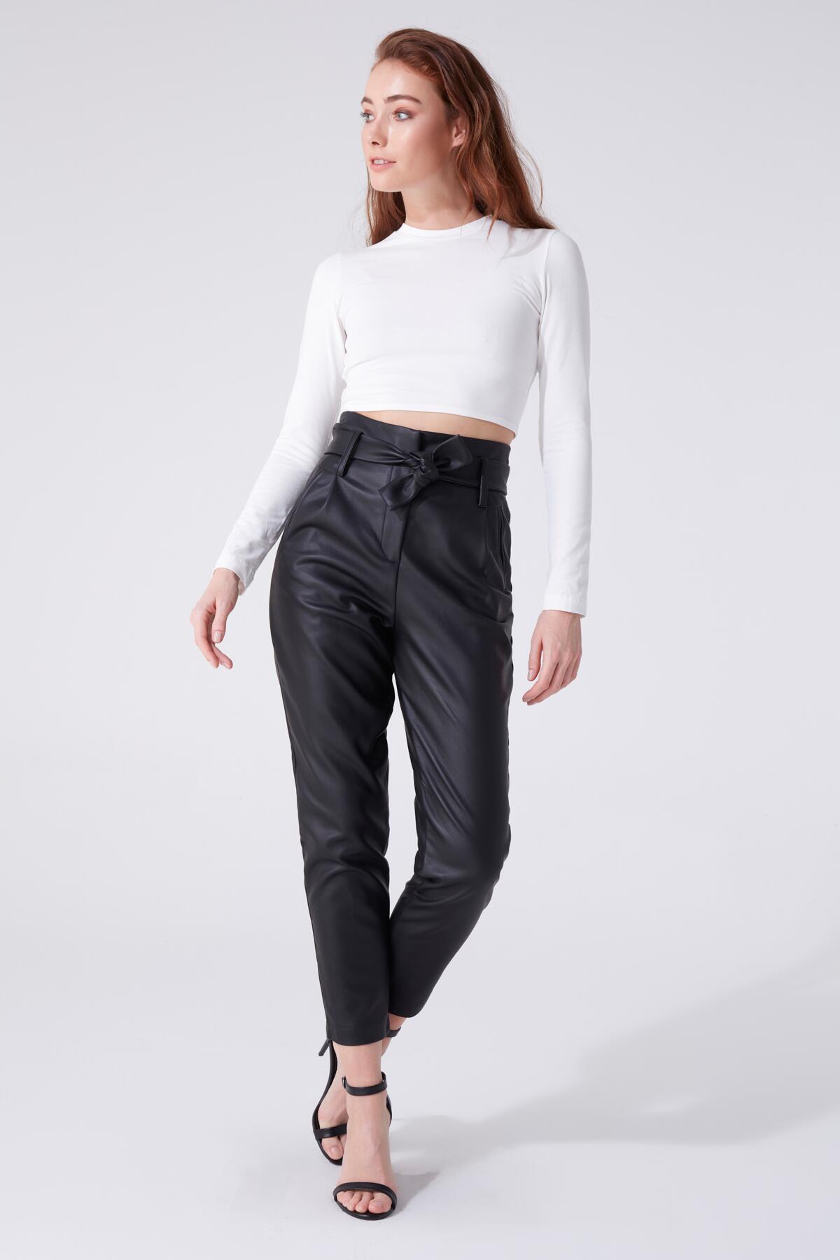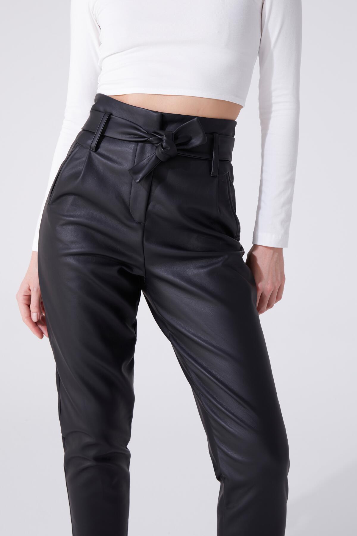 Schwarze Leder High-Waist Haremshose