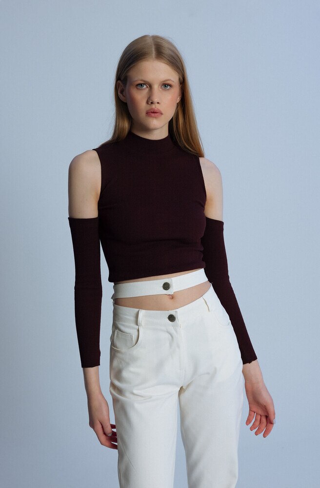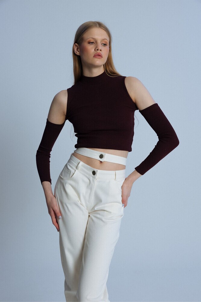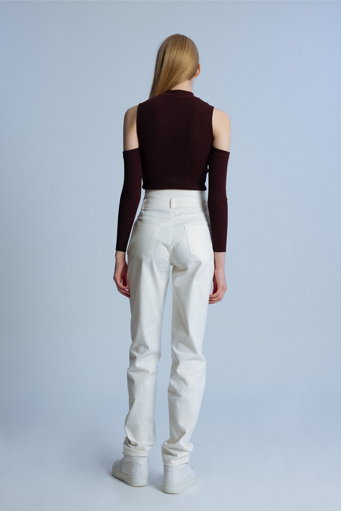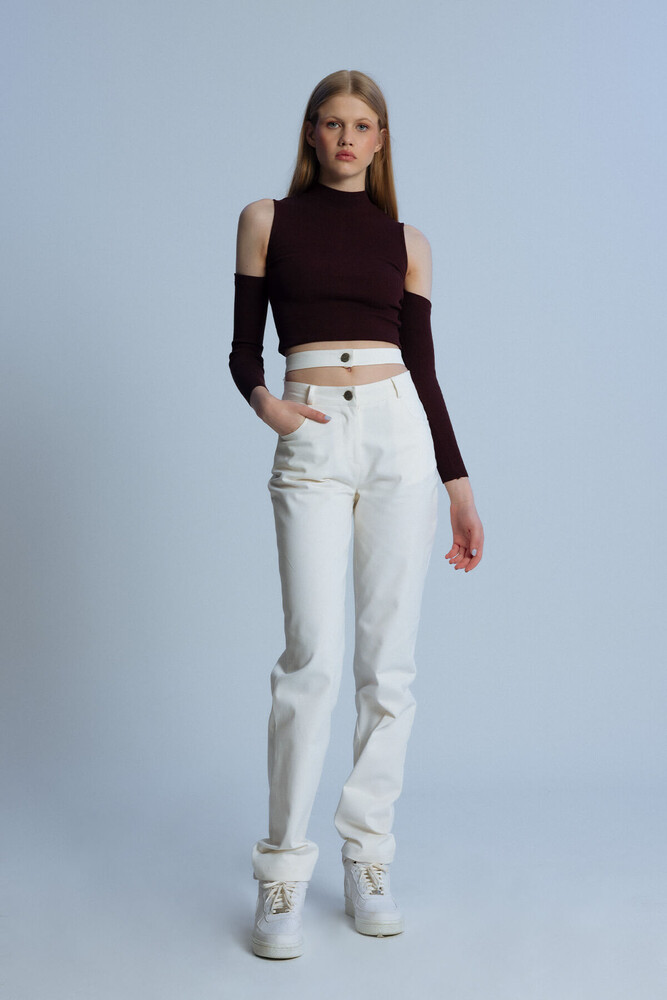 DETAILLIERTE HOSE ECRU MIT ZWEI GÜRTELN