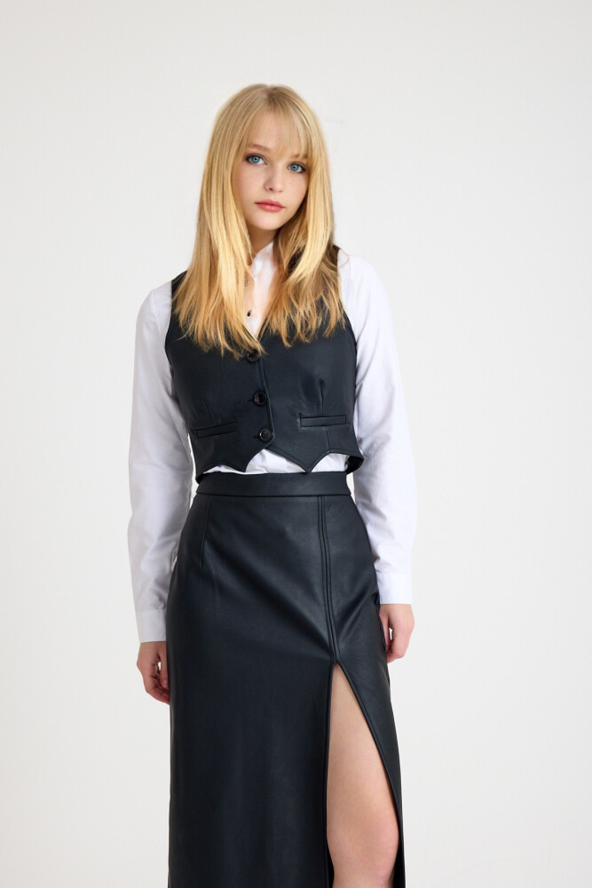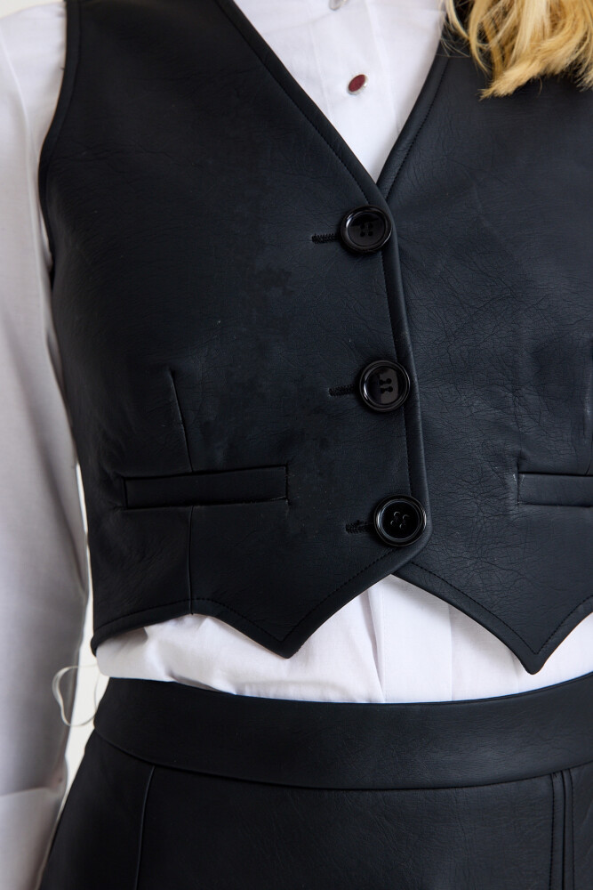 Schwarze taillierte Lederweste mit V-Ausschnitt