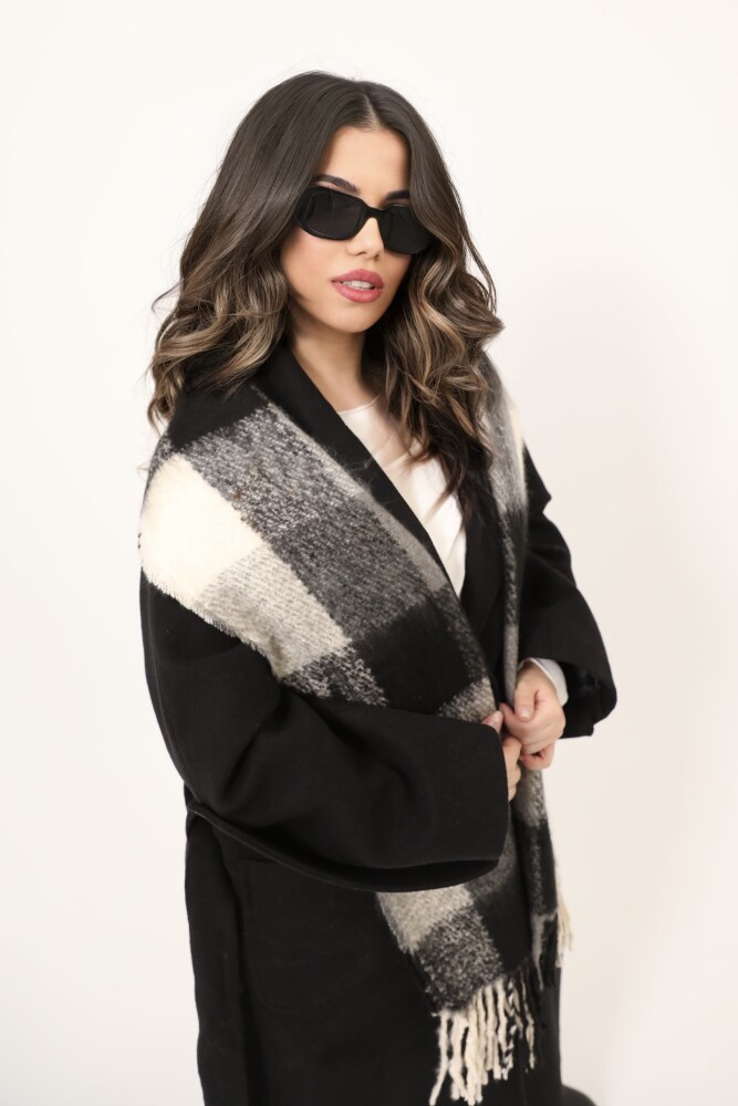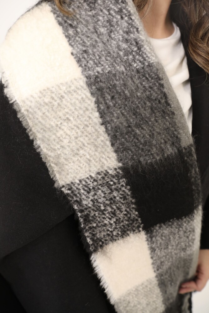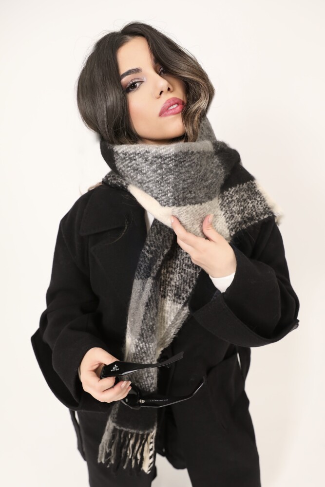 Soğuk havalarda hem sıcak hem de stil sahibi hissetmek isteyenler için ideal bir parça: Siyah Yumuşak Dokulu Kare Desenli Omuz Şalı. Buklet şal atkı kumaşından üretilen bu ürün, yumuşacık dokusuyla konfor sunarken, kare desenleriyle klasik ve şık bir görünüm sağlar. Her kombine uyum sağlayabilen sade siyah tonu sayesinde ister günlük kullanımda ister özel günlerde tercih edilebilir. Omuzlarınızı zarifçe saran yapısıyla hem aksesuar hem tamamlayıcı parça olarak kullanılabilir.