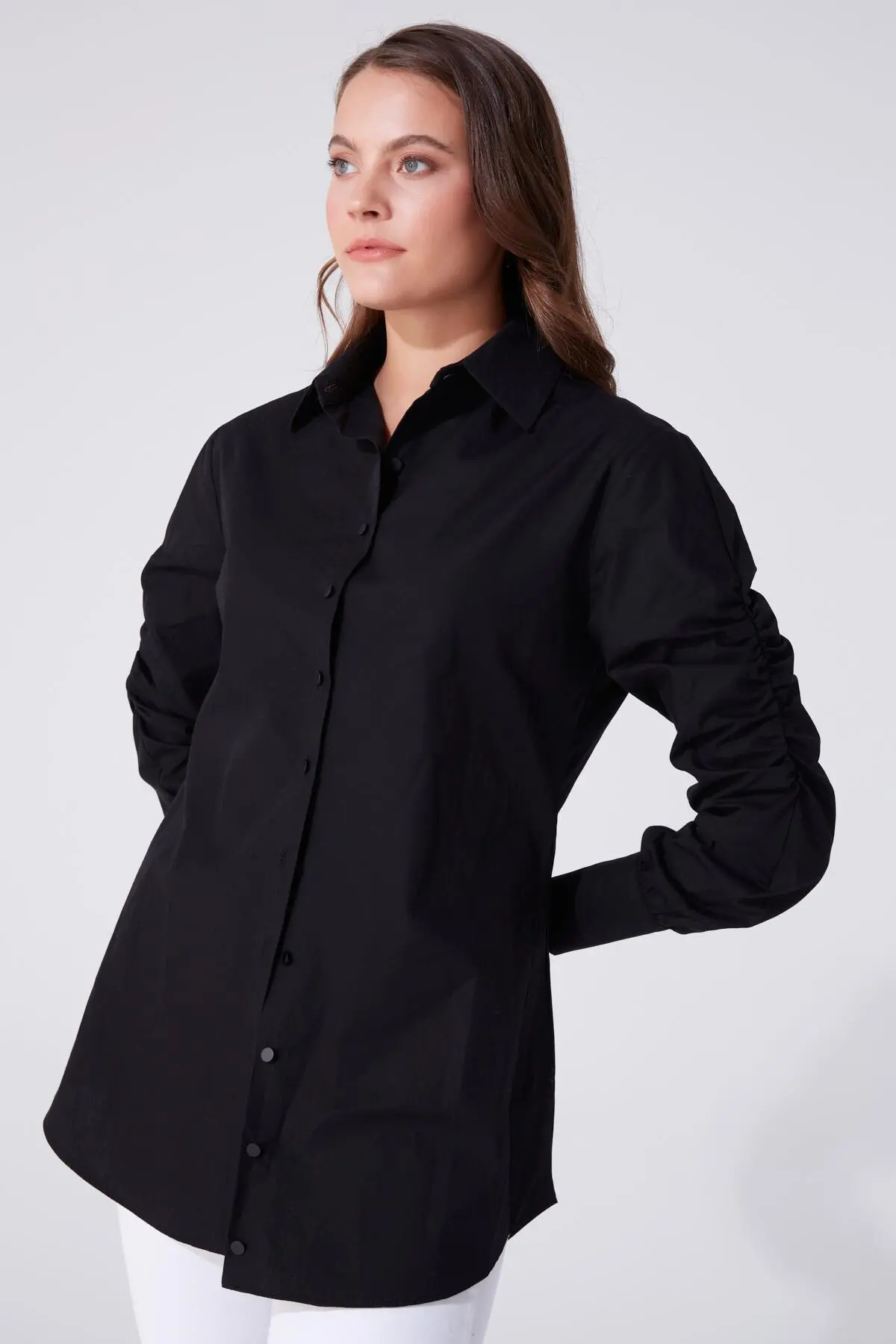 Modellinformationen Höhe: 1,79 Brust: 83 Taille: 61 Hüfte: 89 Produktinformation Stoff : Popeline Probengröße: 36 Farbe schwarz AUFGRUND DER KOMPAKTAUFNAHME KÖNNEN FARBTÖNE ABWEICHEN.