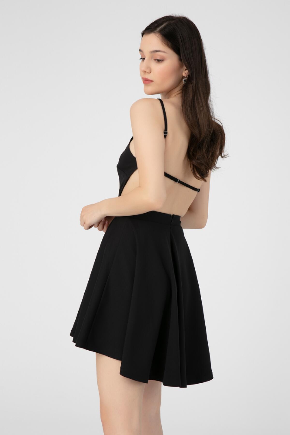 Schwarzes Kleid mit Halterneck und Rückenausschnitt