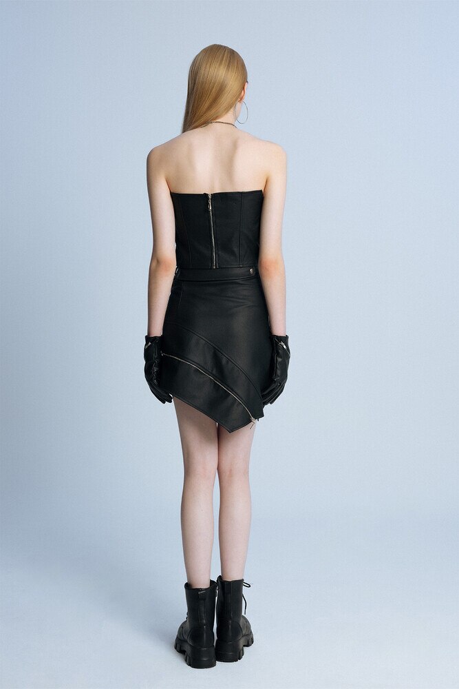 SCHWARZES LEDER-BUSTIER MIT DETAILLIERTEM REISSVERSCHLUSS