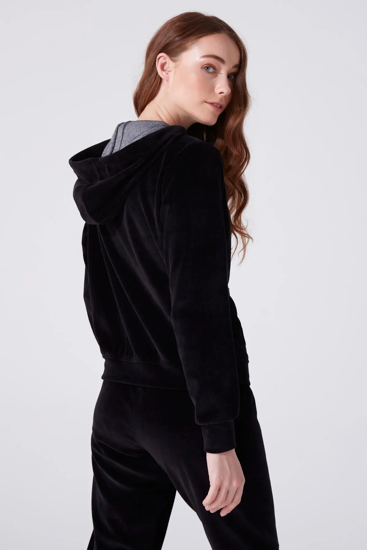 Modellinformationen Höhe: 1,73 Brust: 83 Taille: 60 Hüfte: 89 Produktinformation Stoff : Samt Probengröße: 34 Farbe schwarz AUFGRUND DER KOMPAKTAUFNAHME KÖNNEN FARBTÖNE ABWEICHEN.