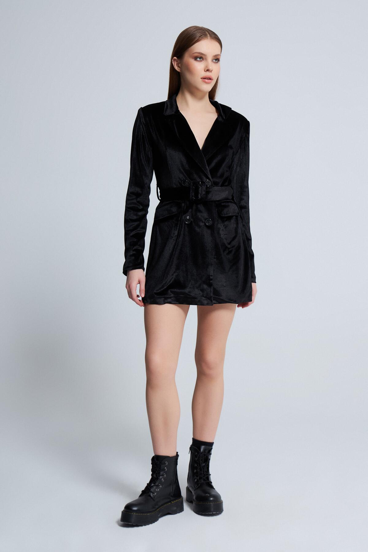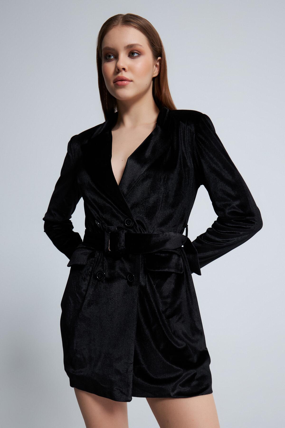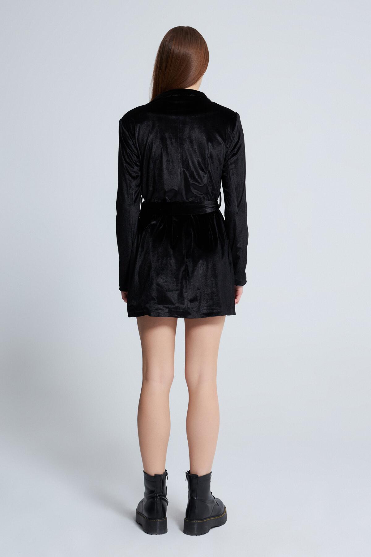 Modellinformationen Höhe: 1,74 Brust: 82 Taille: 62 Hüfte: 88 Produktinformation Stoff: Samt Probengröße: 34 Stoffart: Samt Farbe schwarz AUFGRUND DER KOMPAKTAUFNAHME KÖNNEN FARBTÖNE ABWEICHEN.