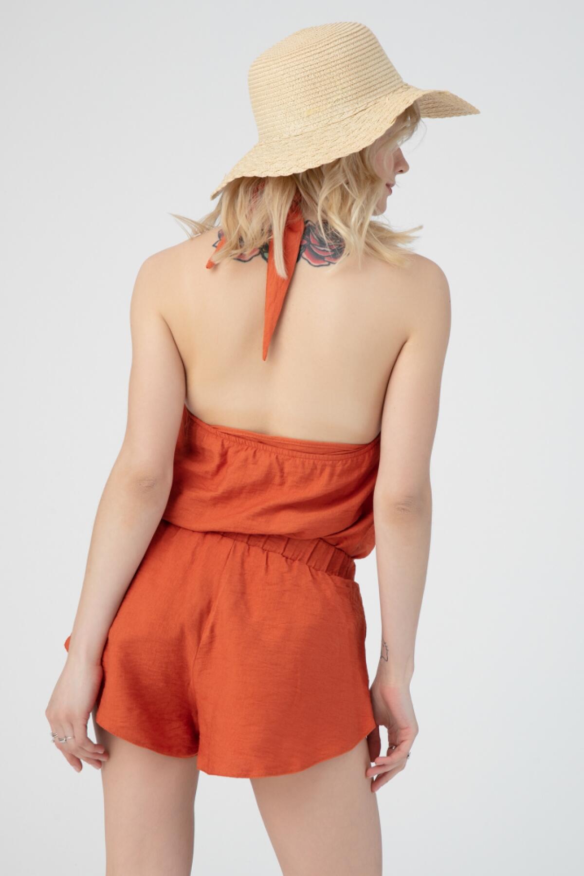 Terrakottafarbene Leinen-Shorts mit elastischem Bund