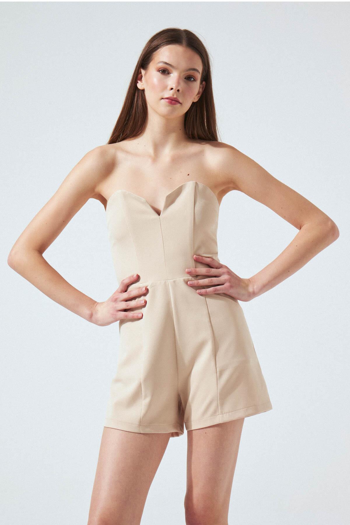 TRÄGERLOSER JUMPSUIT MIT RÜCKENFUTTER AUS NERZ