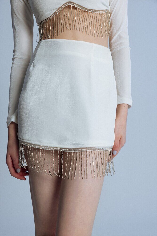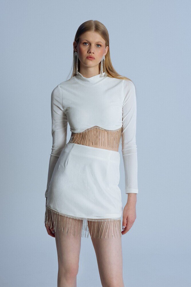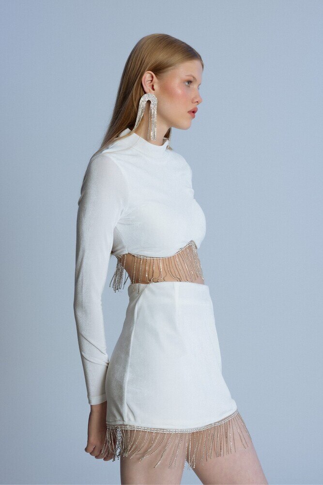 WHITE LONG SLEEVE VELVET HOT STONE BLOUSE